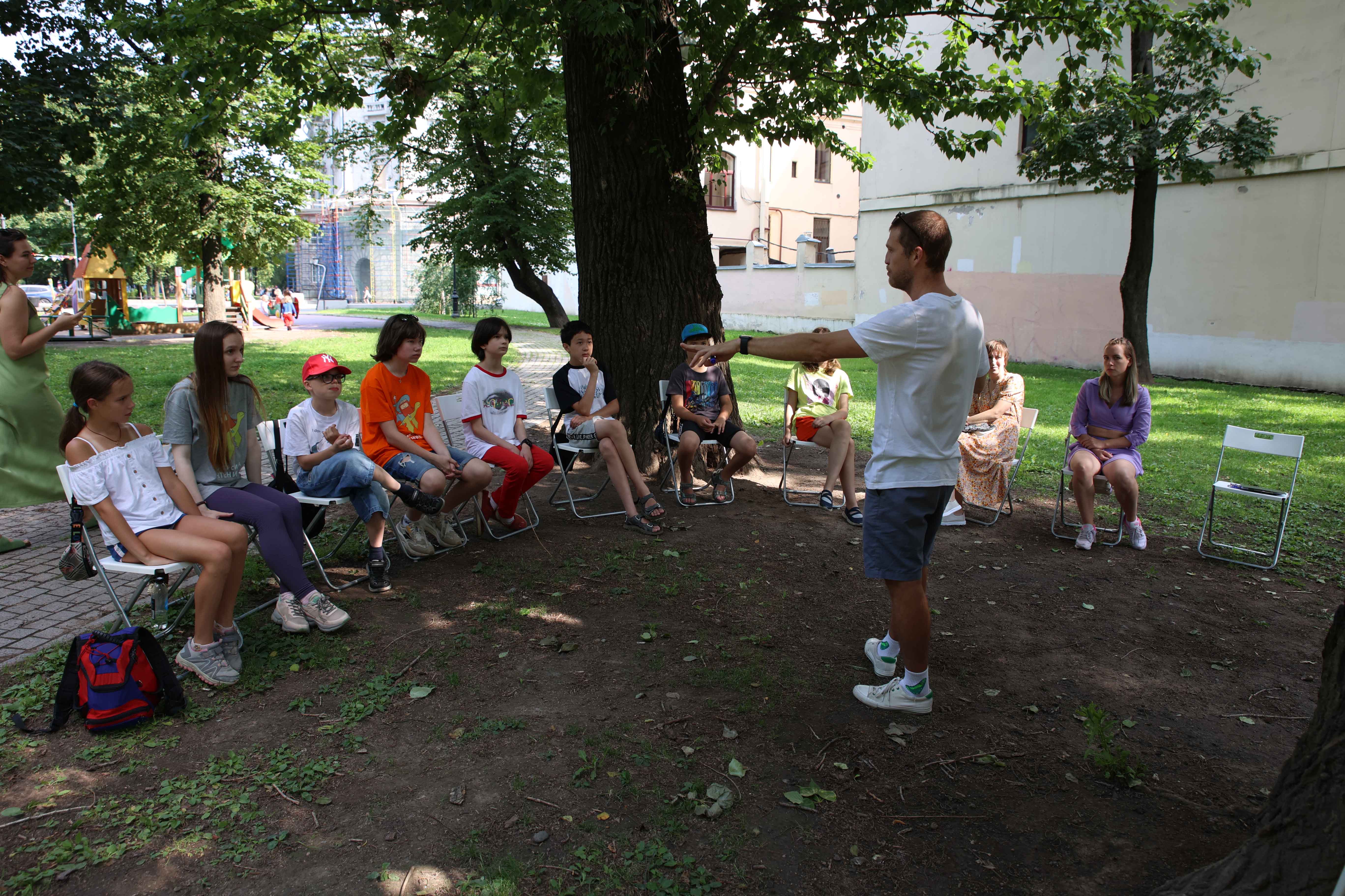 «Лекторий» - место встречи с педагогом театральной импровизации Николаем Бабенко, который пригласил детей и подростков поучаствовать в мастер-классе по основам юмора; эксперты Библиотеки книжных героев приглашали всех желающих отправиться в настоящий поход, а палатка и всё самое необходимое, включая любимую книгу, уже были в сквере!