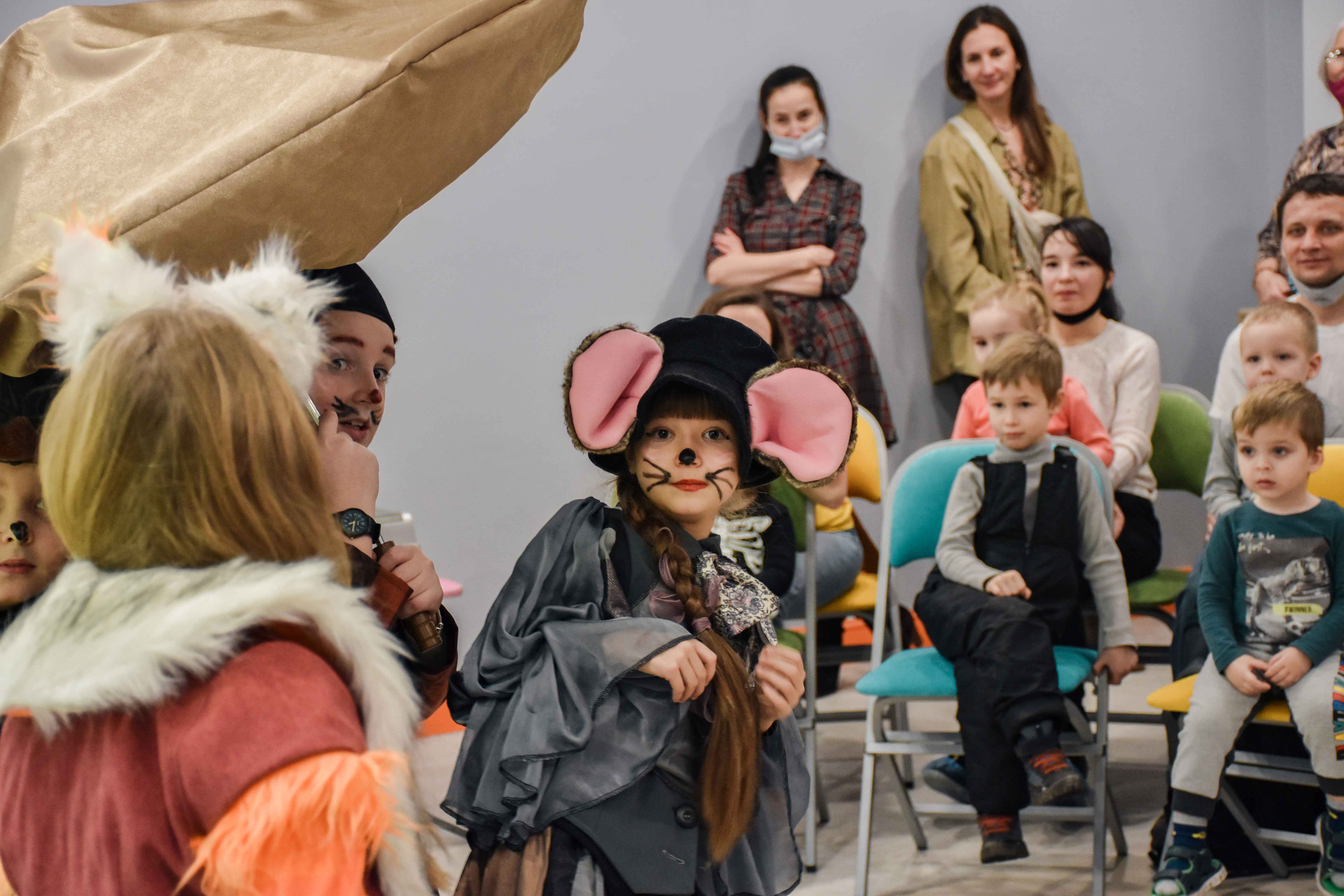 Всех участников интерактивного занятия ждал сюрприз! Юные актёры "Музыкального театрика Ричарда Пинтвериса" Санкт-Петербургской детской школы искусств № 19 - Кузнецов Александро, Бажан Стефания, Вакулюк Варвара, Завитухин Александр, Васильева Екатерина, Калько Яна, Афанасьева Анна, Иноземцева Ева - показали музыкальный спектакль по одноимённой сказке В. Сутеева «Под грибом».
