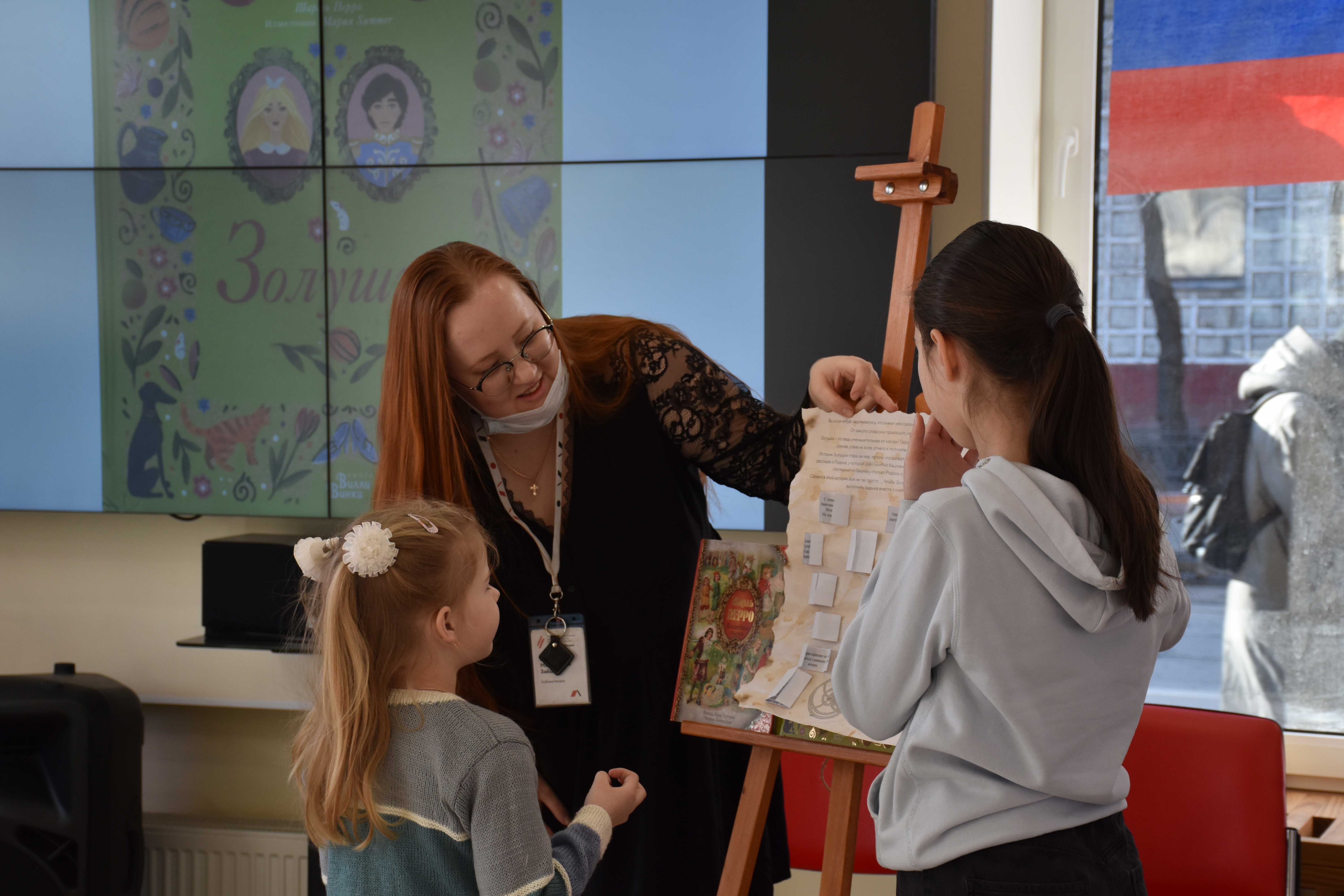 - мы читали вслух сказку «Золушка» (в 2022 году сказке исполняется 315 лет) в переложении Татьяны Долматовой. Для того чтобы отправить бедную, но трудолюбивую девушку на бал, ребятам пришлось пройти настоящий книжный квест: обращали внимание на очень красивые иллюстрации Марии Summer, разгадывали загадки, находили тайные символы и знаки, разбросанные по библиотеке.
