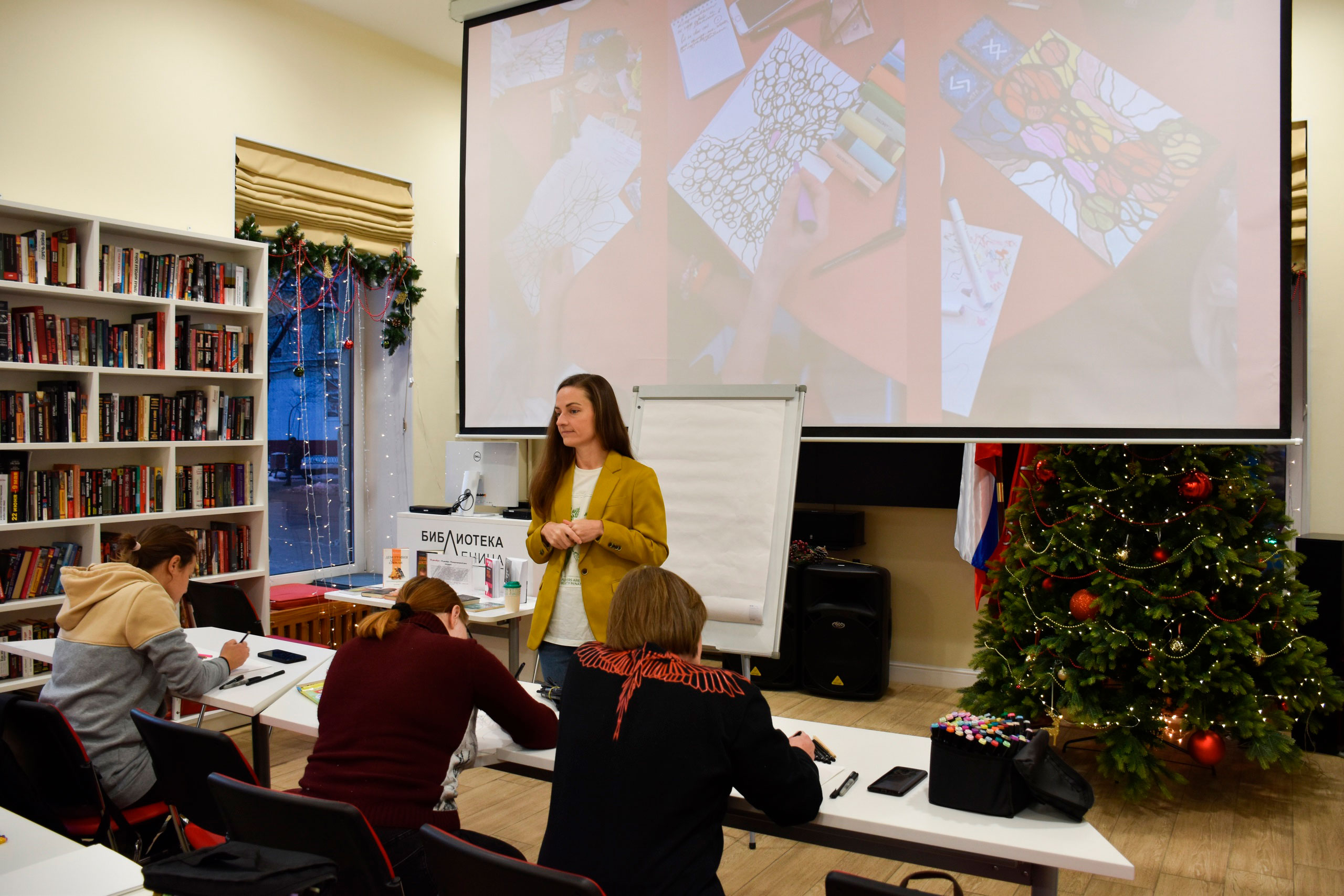 18 декабря в Библиотеке имени В.И. Ленина (ул. Воскова, д. 2), состоялся мастер-класс по нейрографике. Мастер-класс провела опытный специалист в данной области Юлия Зубарева.