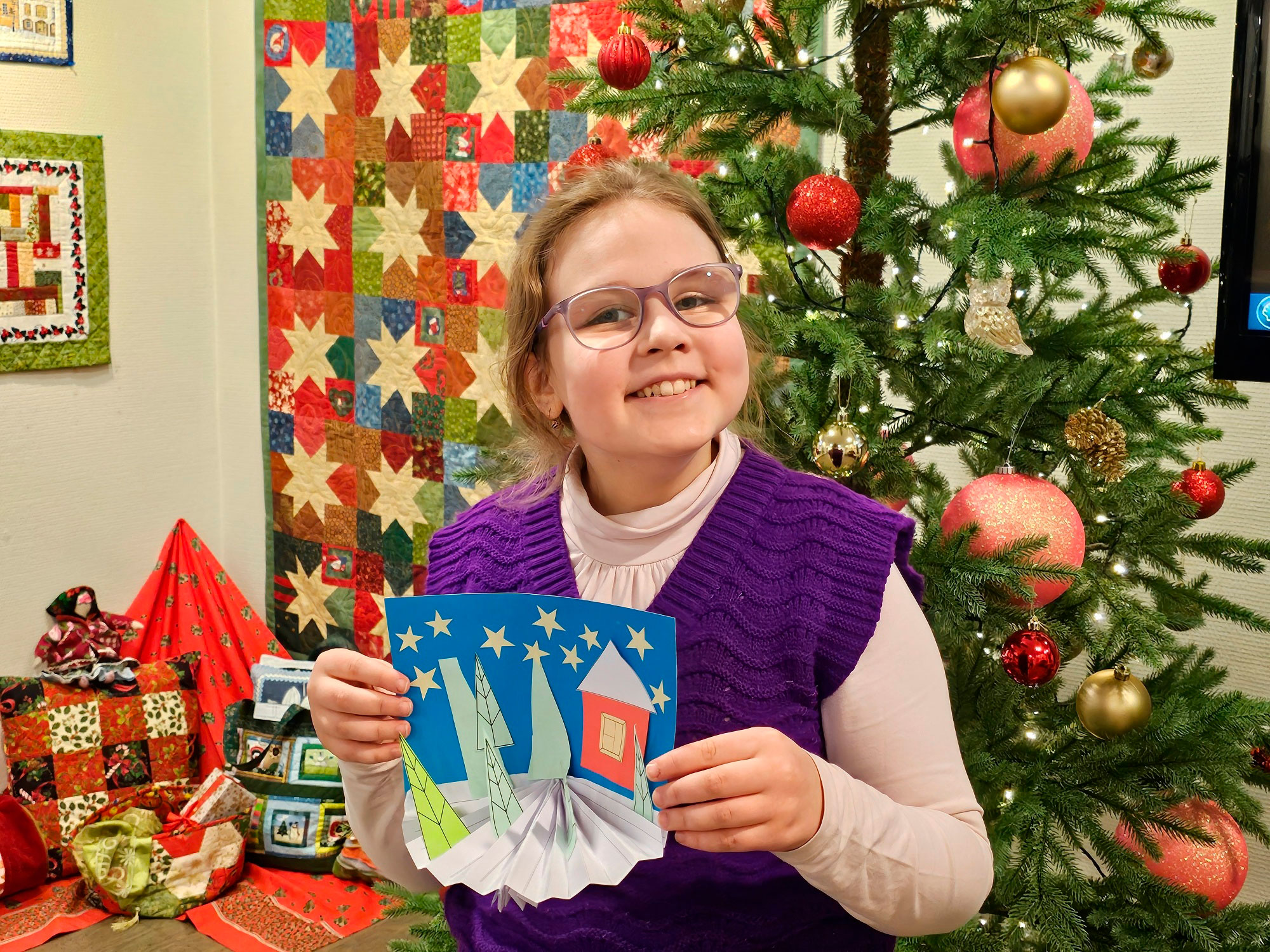 В Новый год мы ещё обмениваемся подарками! Поэтому ребята вместе с библиотекарем изготовили красивую объёмную новогоднюю открытку "Зимний лес", передающую атмосферу зимней сказки.