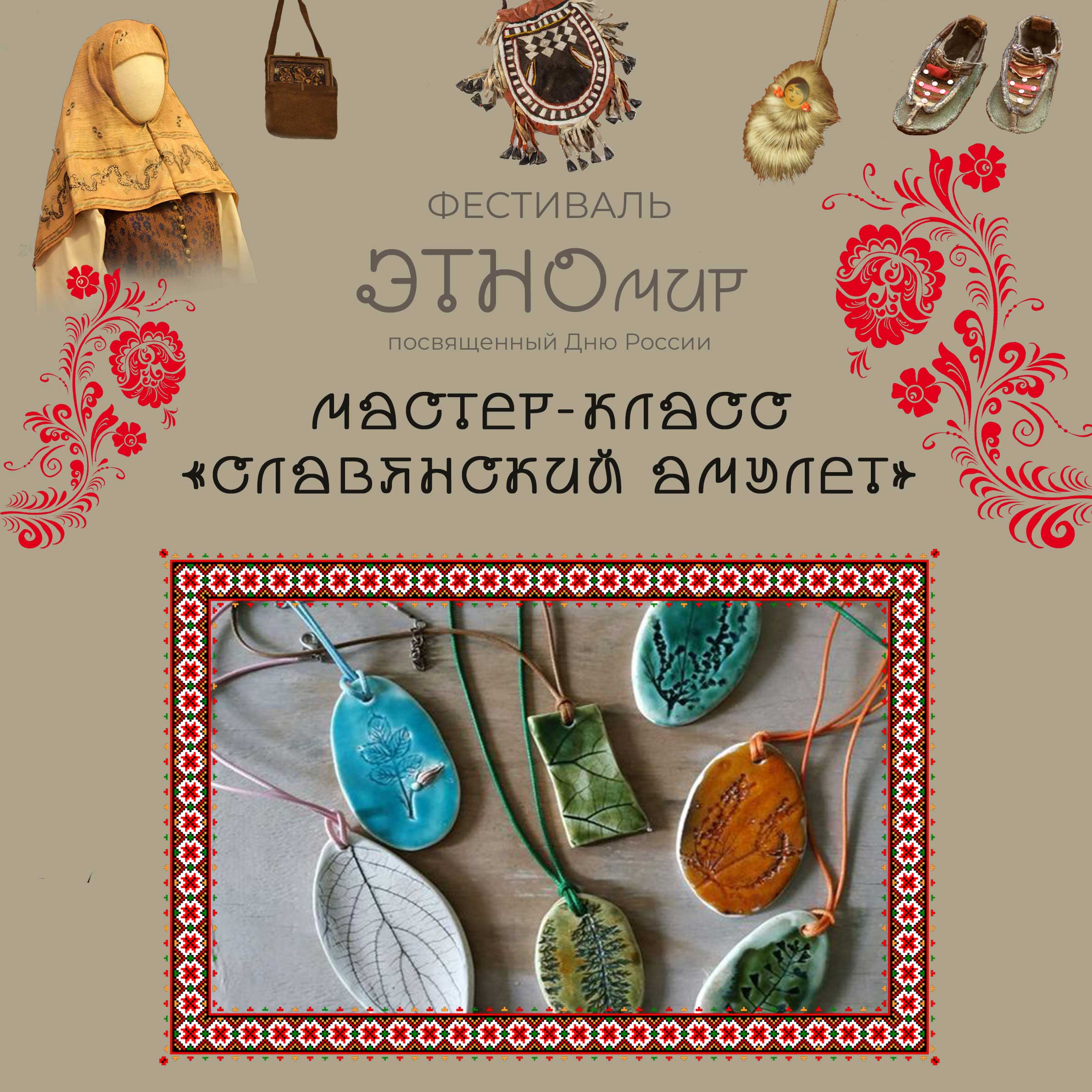 На мастер-классе будет использоваться самозатвердевающая глина, которая не требует обжига. Получившееся изделие можно будет раскрасить красками или добавить украшений в виде орнамента или цветочных отпечатков, чтобы амулет получился именно таким, каким задумывался.