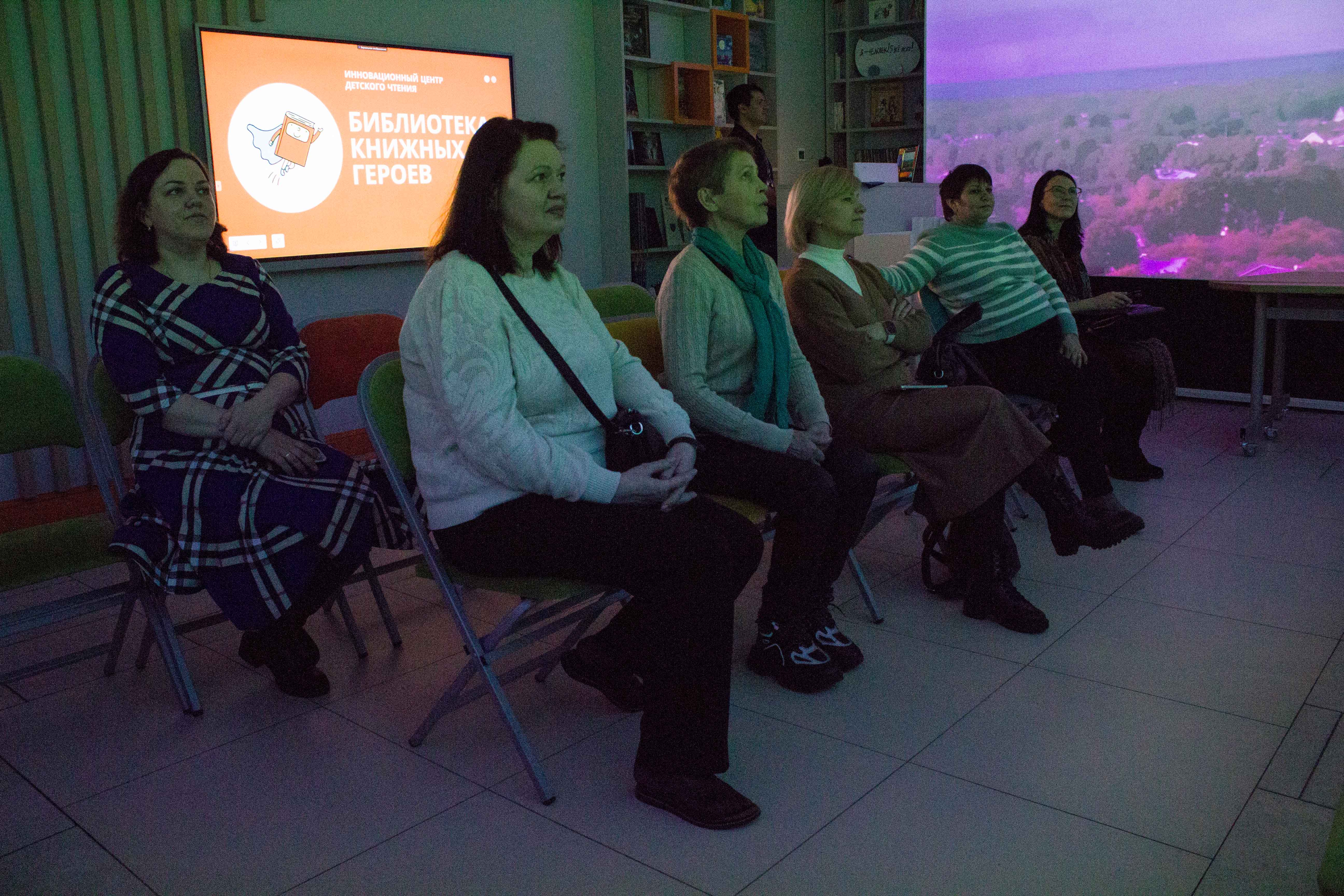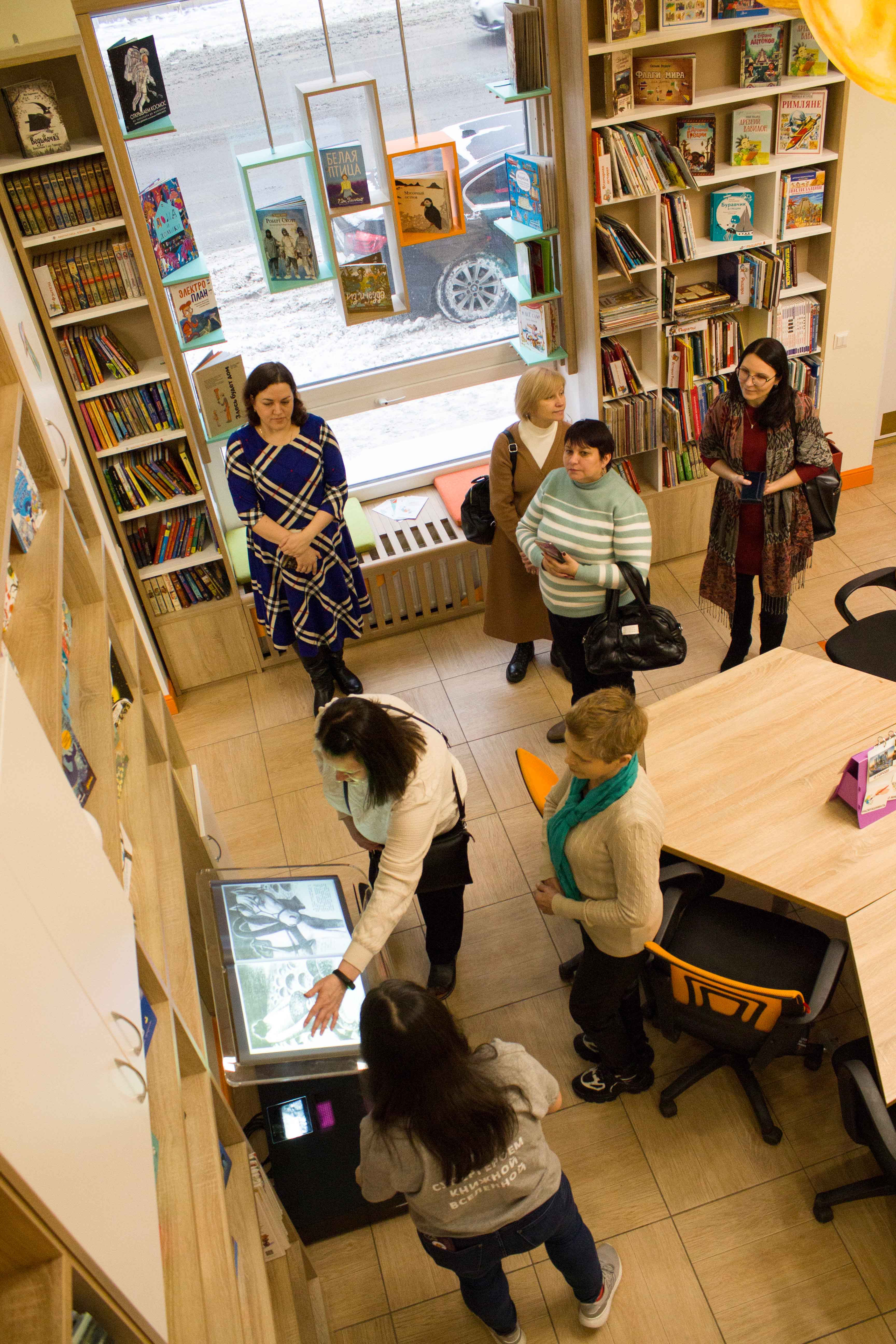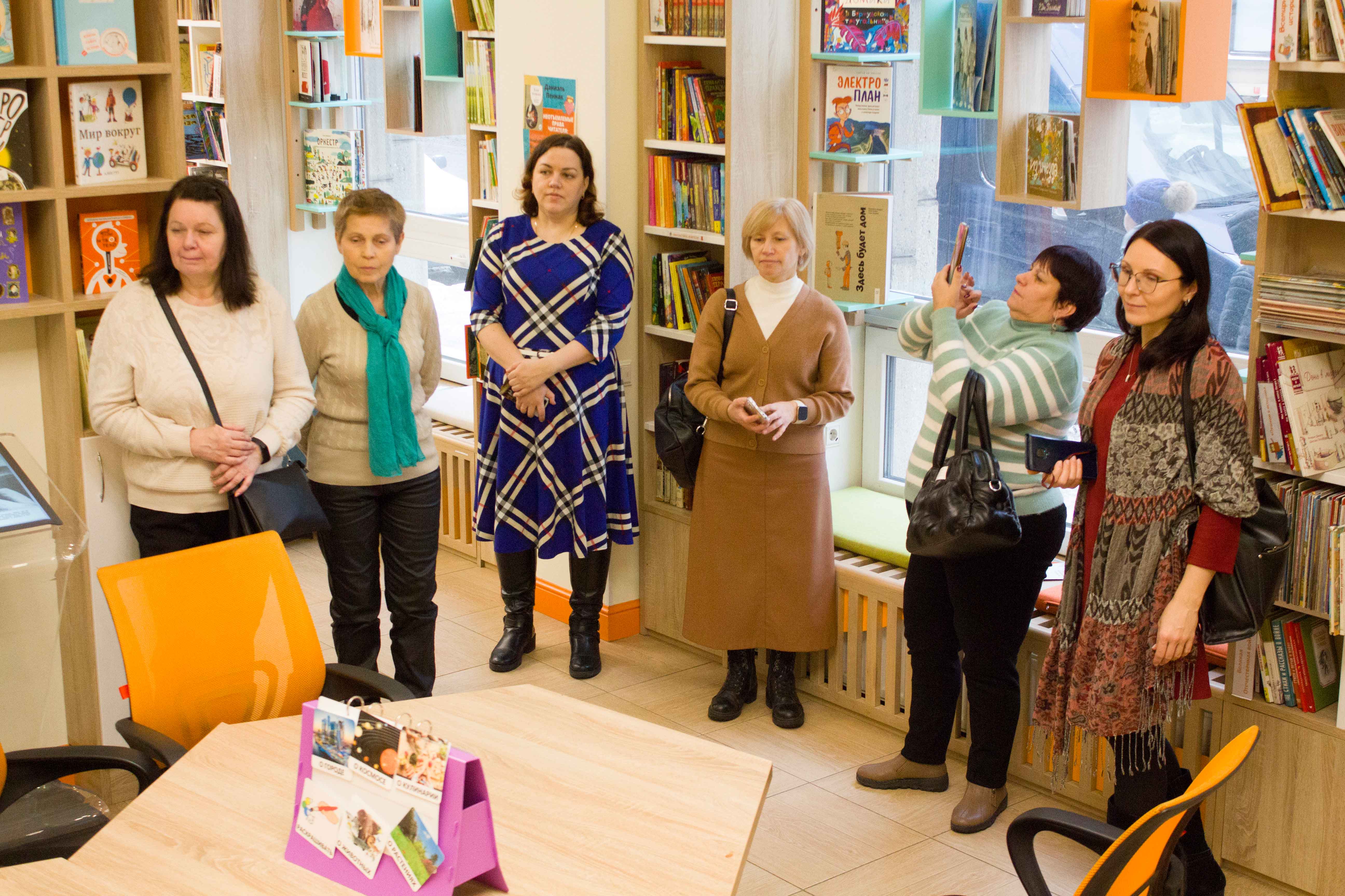 Заведующая библиотекой Анна Васенина провела для коллег экскурсию и познакомила с пространством инновационного Центра детского чтения. Коллеги узнали о концепции и основных направлениях проектной деятельности библиотеки. Особое внимание Анна Сергеевна обратила на интерактивные проекты библиотеки: экран с дополненной реальностью «В гостях у сказки», проект «Интерактивная карта России» и электронную книгу, в которой хранятся оцифрованные ретро-издания детской литературы.