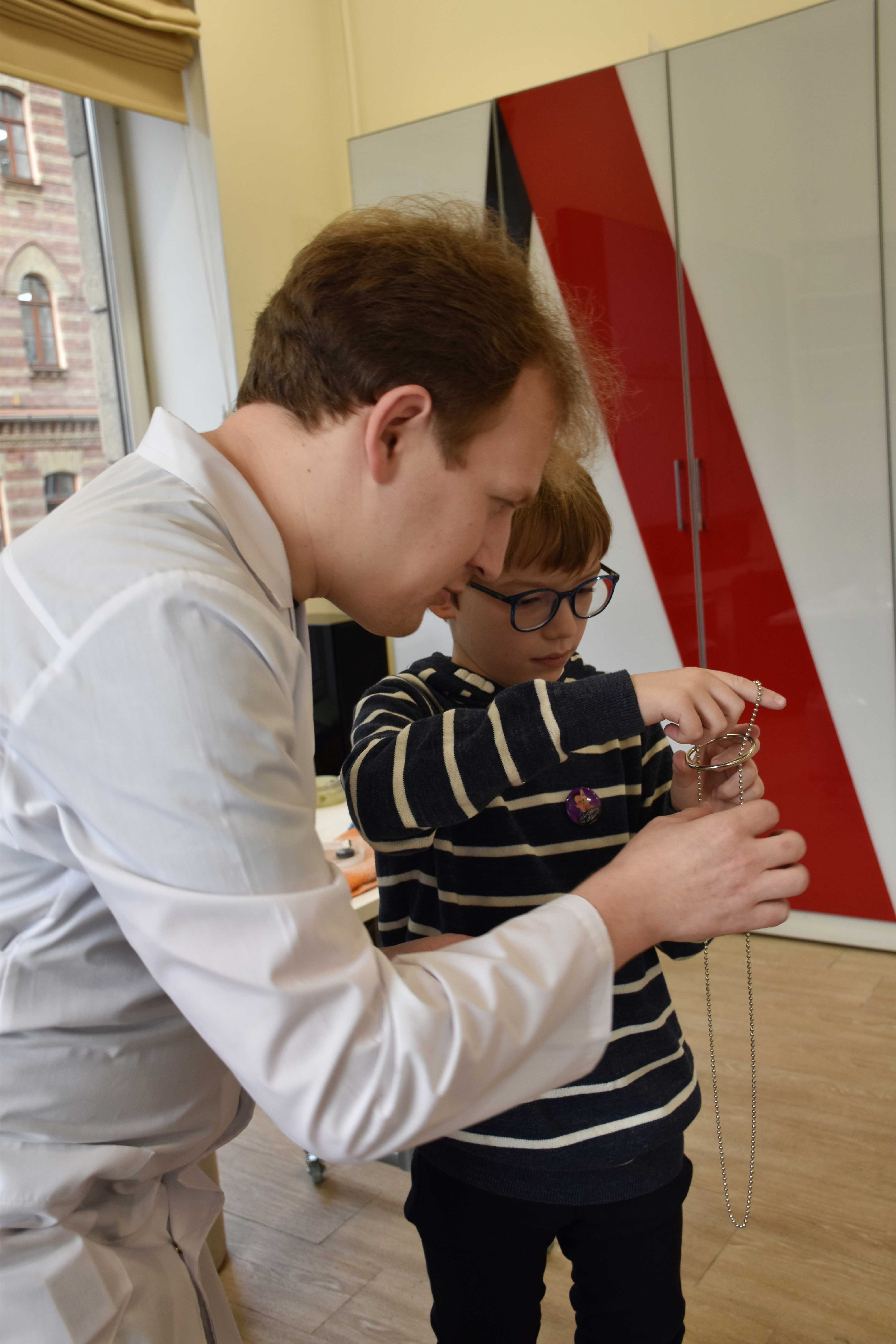 «Заведовал» лабораторией Алексей Евсюков - преподаватель химии Губернаторского Физико-математического лицея №30, член жюри Санкт-Петербургского конкурса педагогических достижений «Педагогические надежды», тренер олимпиадной сборной Санкт-Петербурга по химии.