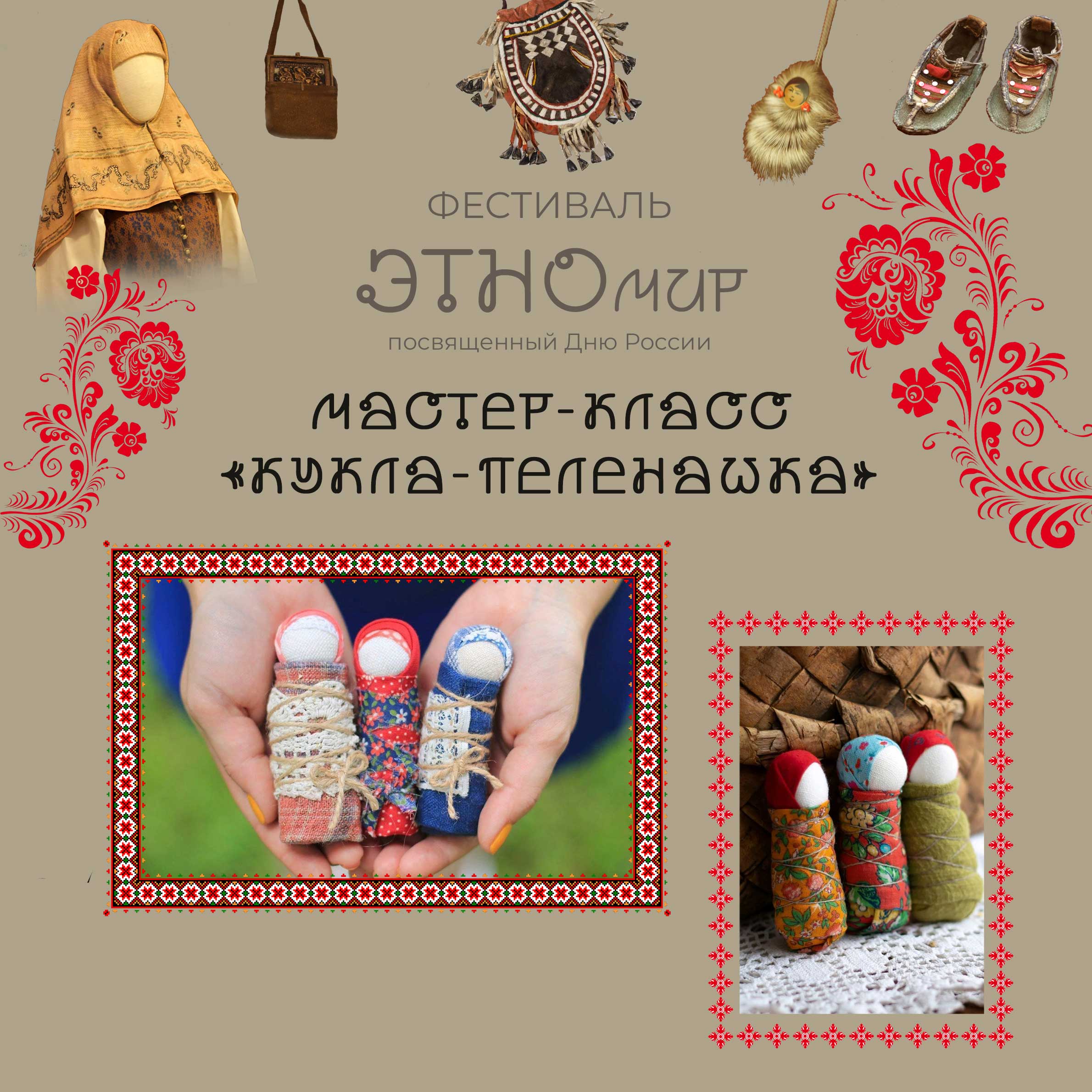 14 июня в 18.00 в Библиотеке им. В.И.Ленина (ул. Воскова, д.2) в рамках фестиваля «ЭТНО мир», посвящённого празднованию Дня России состоится мастер-класс «Кукла Пеленашка».