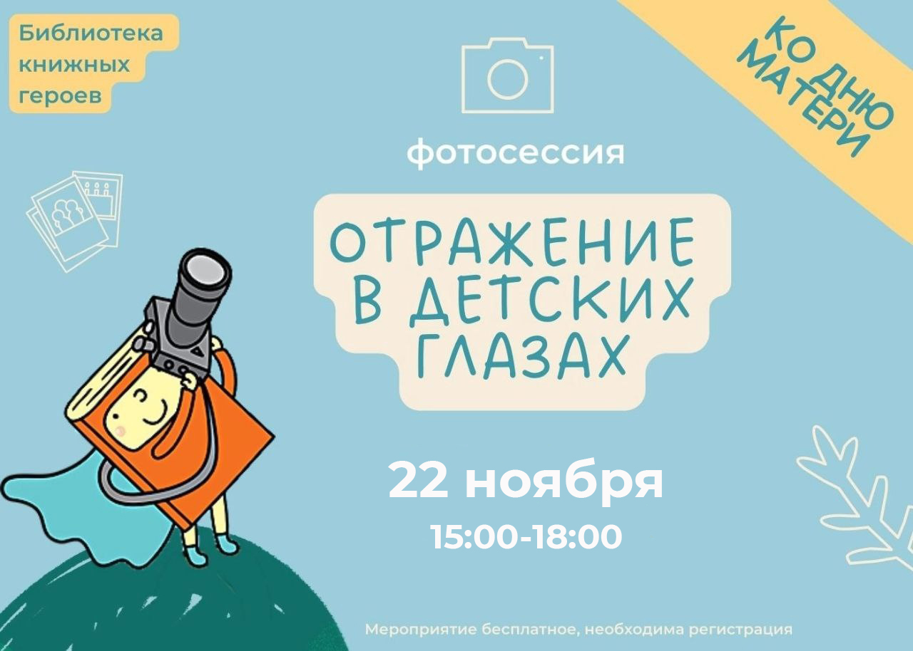 В Библиотеке книжных героев 22 ноября состоится фотопроект «Отражение в детских глазах», посвященный Дню матери. Главная идея фотопроекта - запечатлеть не только радости семейной жизни, но и раскрыть индивидуальную красоту каждой мамы.