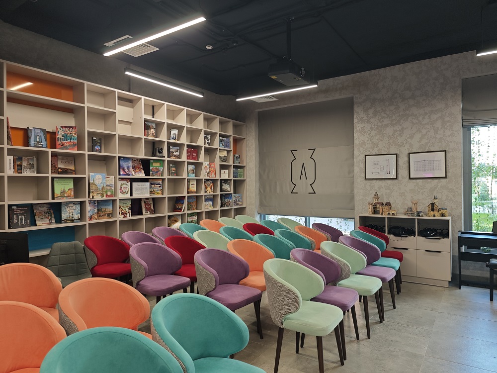 Цель визита заключалась в знакомстве с новым библиотечным пространством, изучением концепции его организации и истории места, связанной с историей петербургской кондитерской промышленности. Участники встречи получили возможность ознакомиться с особенностями проектирования и оформления интерьера, функциональными зонами и технологиями, используемыми в библиотеке.
