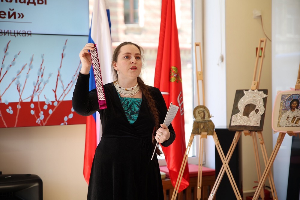 - Натальи Козловой-Головицкой, реставратора и основателя Центра вышивки «Иволга», провела экскурс в историю русских традиций убранства икон— «Русские традиции убранства икон. Жемчуг, бисер и золотые оклады с 17 века до наших дней».