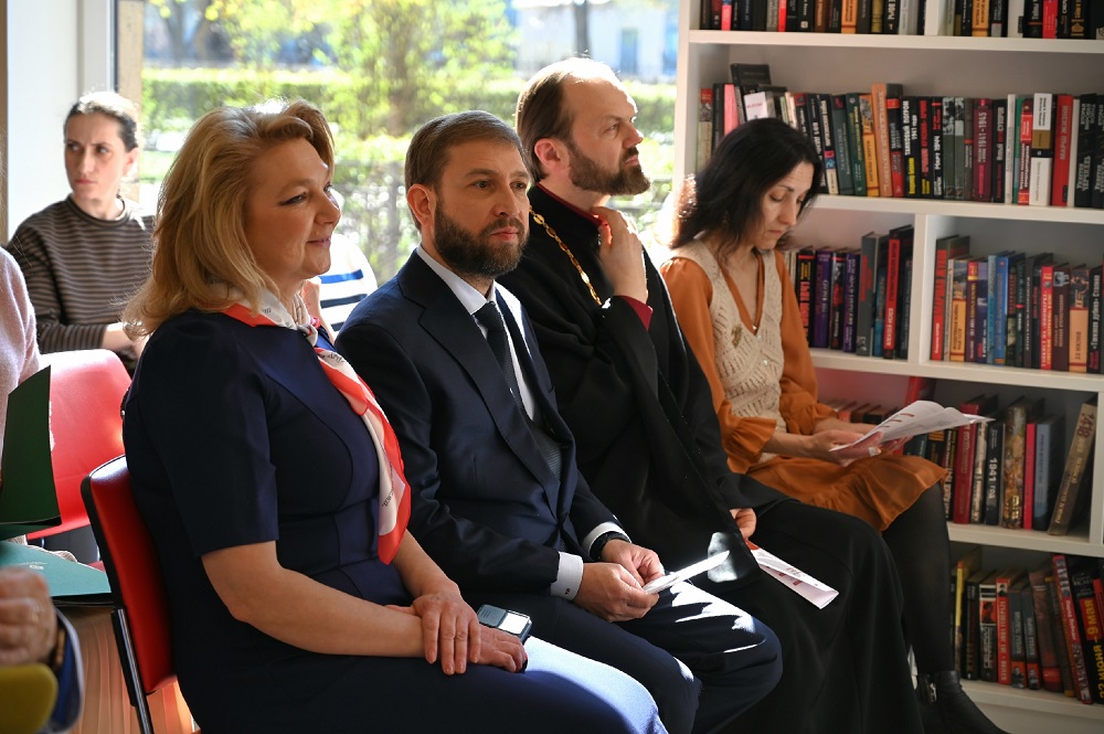 Праздничный день начался с душевного мастер-класса «Добрая открытка» для школьников, который провели сёстры милосердия из храма Сергия Радонежского на Крестовском острове.