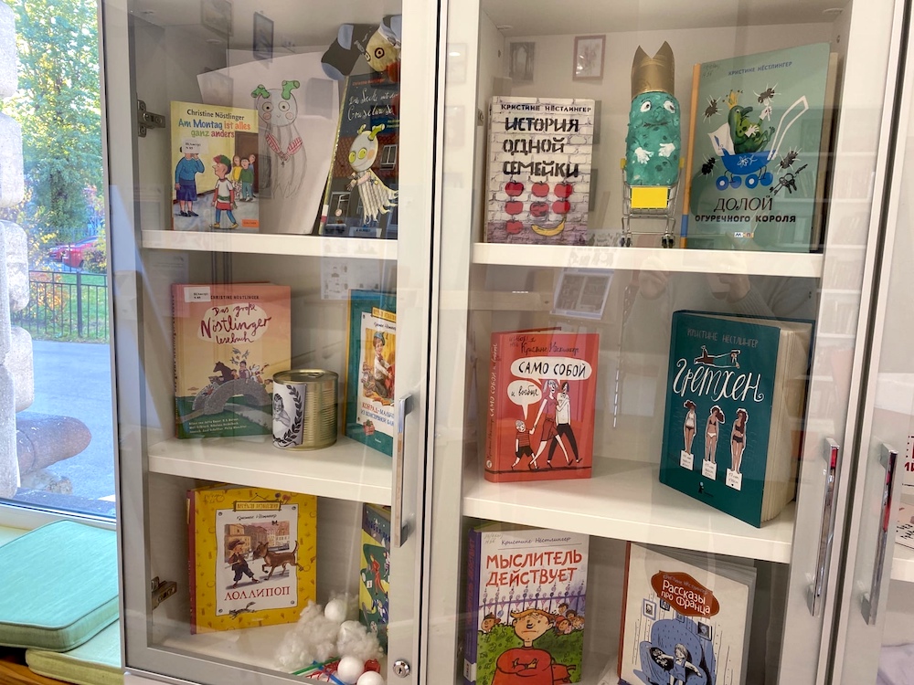 Для всех, кто пришёл на круглый стол, была организована выставка книг Кристине Нестлингер на русском и немецком языках. Это издания из фондов библиотек Петроградского и Невского районов и библиотеки Гёте-института.