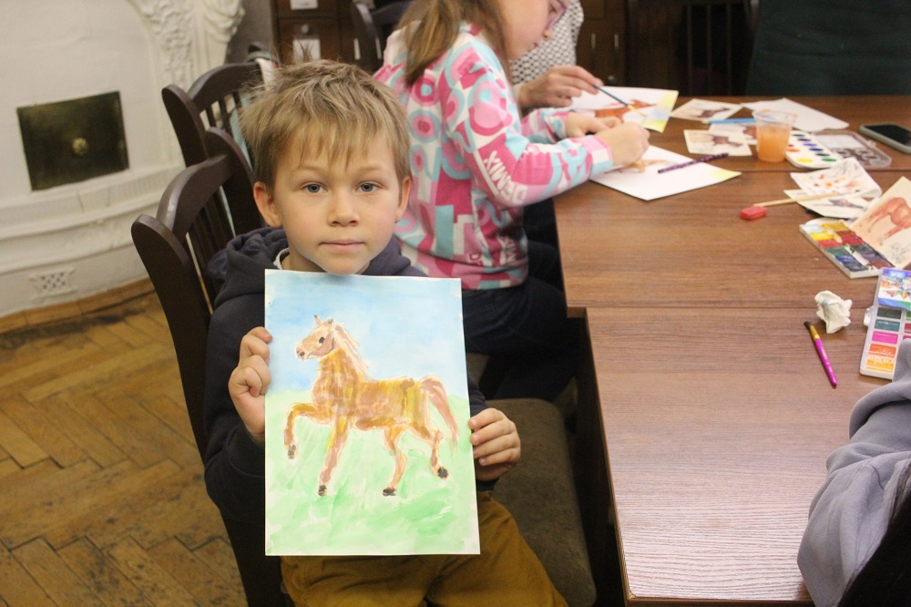 В Юношеской библиотеке имени А. П. Гайдара (Большой пр. П. С., дом 18) 15 ноября прошёл мастер-класс «Рисуем огненную лошадь». Педагог Дворца детского творчества Петроградского района Ольга Быкова рассказала участникам, как изобразить такое грациозное животное, как лошадь: передать движение, настроение и, самое главное, не испортить работу на этапе раскрашивания.