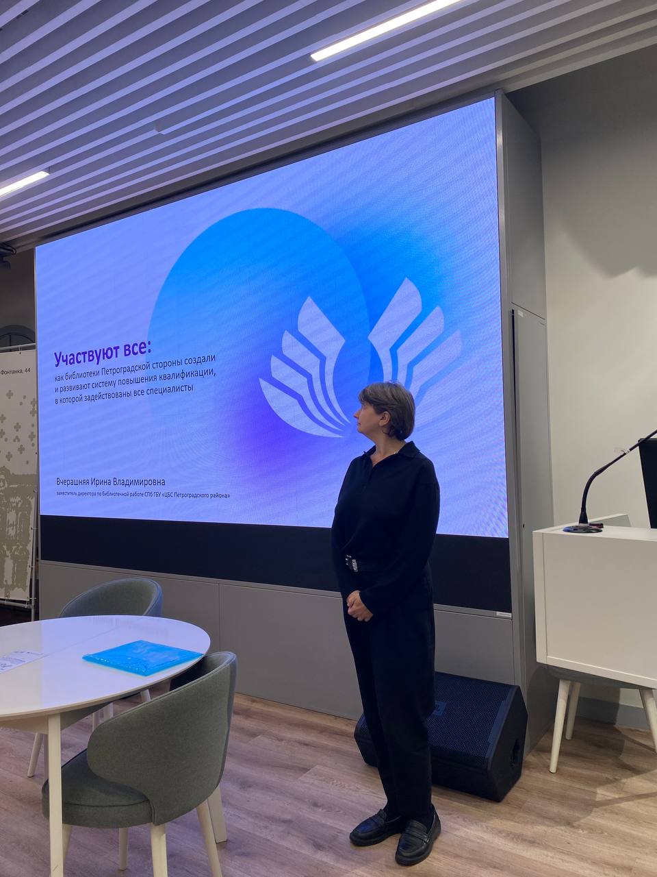 Ирина Владимировна Вчерашняя, заместитель директора по библиотечной работе СПб ГБУ "ЦБС Петроградского района", в своем докладе представила трансформацию модели программ повышения квалификации начиная с 1984 года и по сегодняшний день, рассказала с какими проблемами пришлось столкнуться и как это повлияло на формирование нынешней модели программ повышения квалификации.