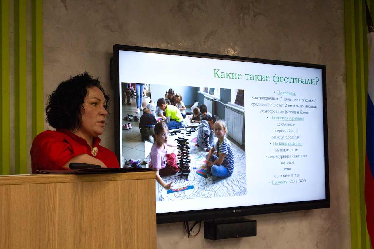 Опытом проведения крупных фестивалей поделилась заведующий ЦДБ им. Н. А. Внукова Марина Терехова. Марина Владимировна рассказала о том, как рождаются креативные идеи, как найти партнёров для их реализации и зачем фестивалю гибкий чек-лист.