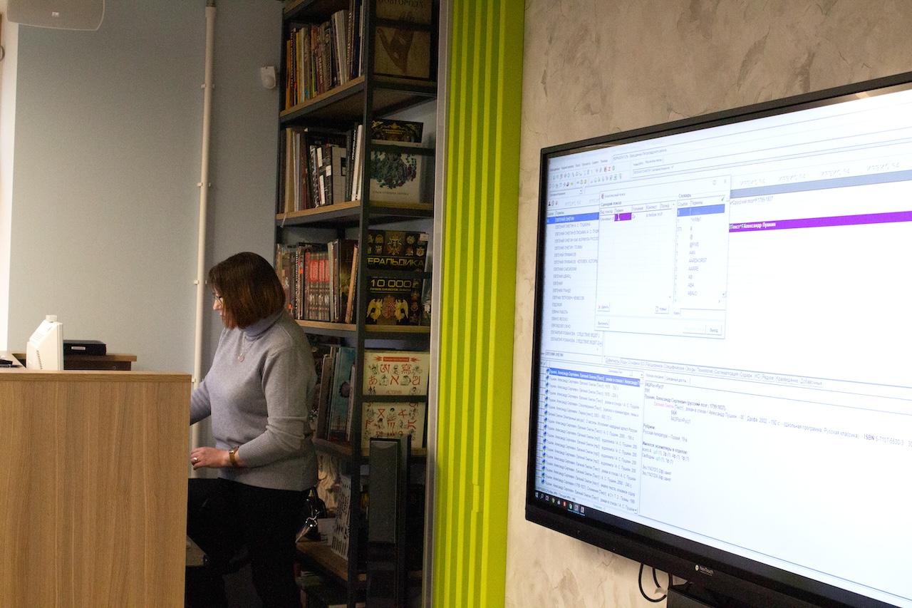 Библиограф Светлана Приходько наглядно продемонстрировала сотрудникам отделов обслуживания поисковые возможности библиотечно-информационной системы «ИРБИС».