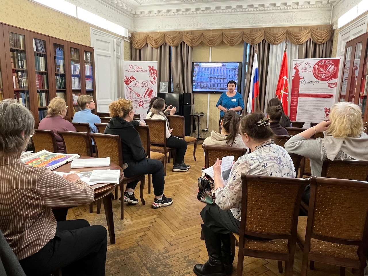 Особенностью мероприятия стало его место проведения. Заведующая библиотекой Людмила Артуровна Кашпур провела для коллег экскурсию, рассказав об истории одной из старейших библиотек Петроградской стороны.