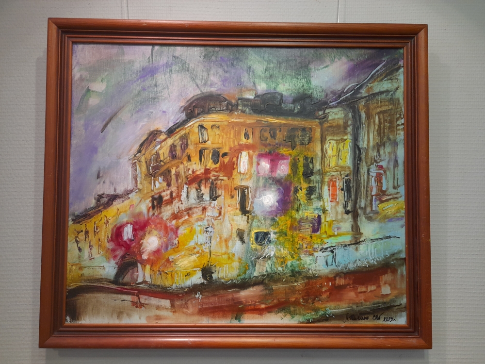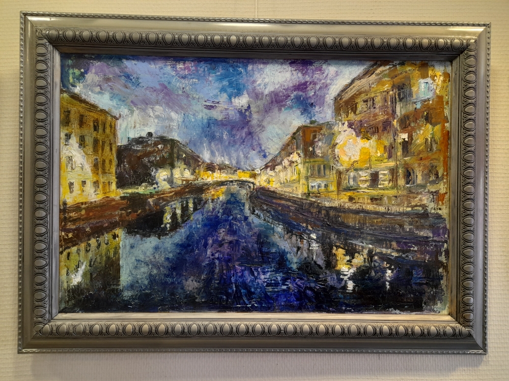 Но и это ещё не всё – в творчестве Людмилы Пигиной проявляется ещё одна грань нашего города – это ночной город. Ночной город оживает в ярких огнях на фоне фантастического ультрамаринового неба. На выставке представлено несколько работ – проба кисти, настрой на дальнейшую работу.