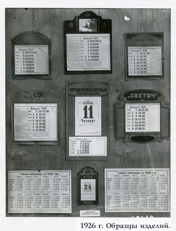 Ассортимент выпускаемой фабрикой продукции был очень разнообразным. Одних только календарей насчитывалось десятки видов: «Будуарный», «Малый Деловой», «Иллюстрированный перекидной», «Исторический календарь», «Записной Кирхнер» и другие.