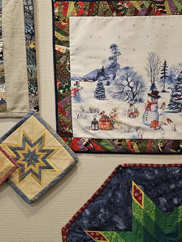 В экспозиции собраны работы мастериц по лоскутному шитью из разных уголков Ленинградской области. Среди них – сказочные герои, созданные из разноцветных тканевых фрагментов, зимние и рождественские композиции, а также уютные рукавички-прихватки и декоративные ёлочки, наполняющие пространство атмосферой тепла и праздника.