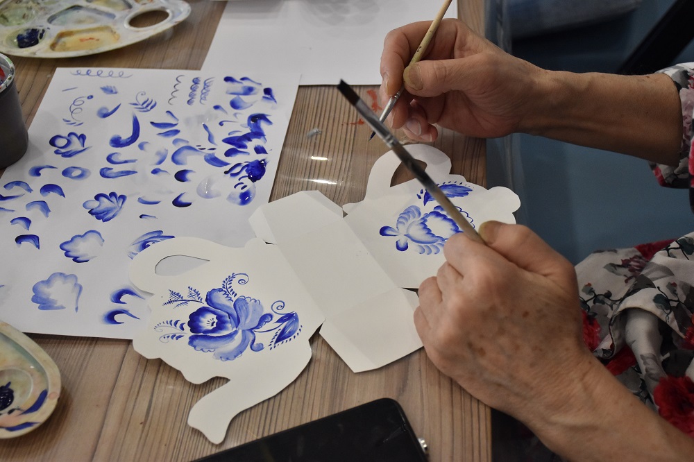 Первым событием проекта стал детский мастер-класс «Секреты гжельского мастерства»: юные участники узнали об истории народного промысла и создали макеты чайников со знаменитой росписью.