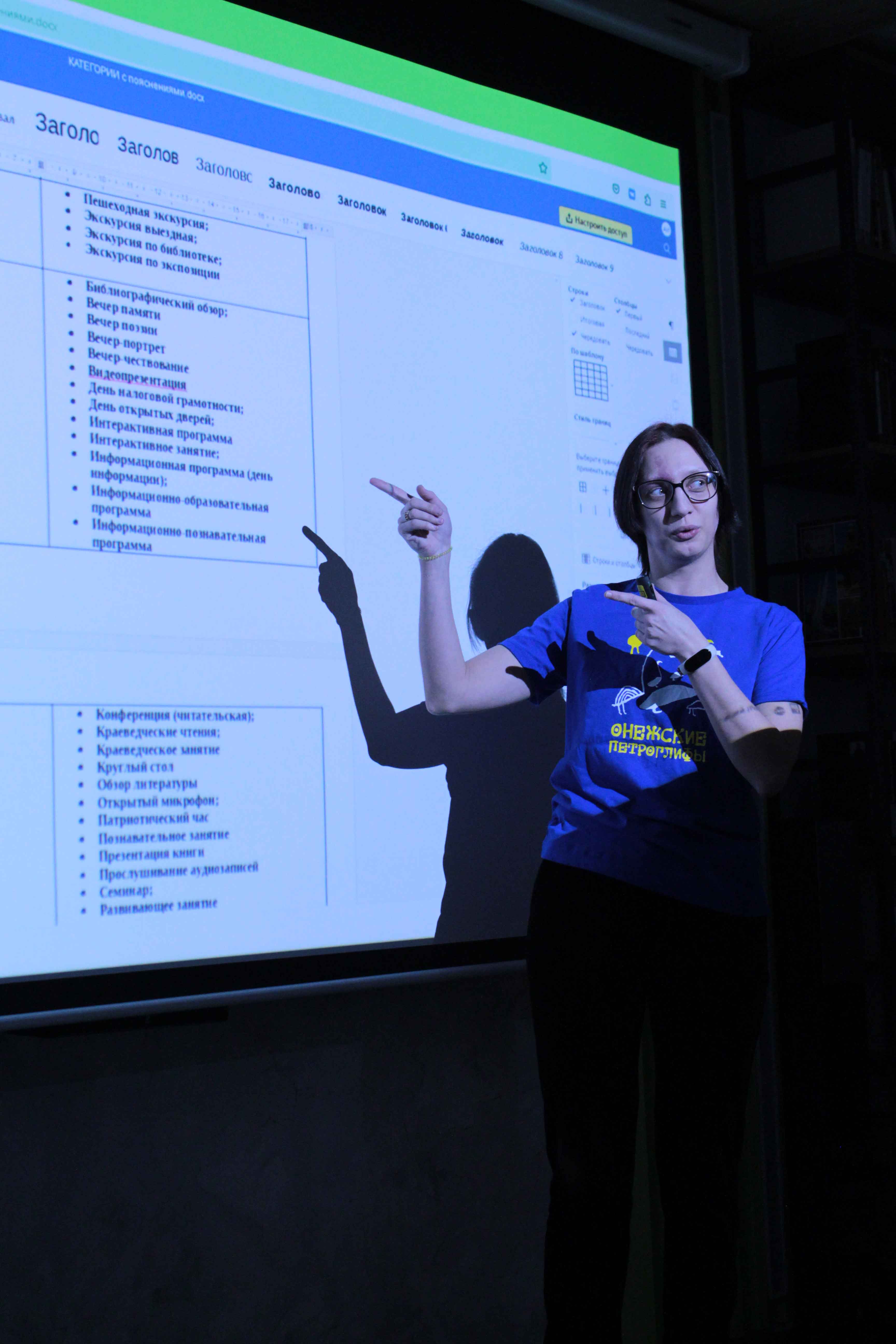 Специалист по информационным ресурсам Анастасия Иванова раскрыла нюансы работы с базой данных библиотечных мероприятий «Events» и афишей мероприятий на официальном сайте СПб ГБУ «ЦБС Петроградского района». Были рассмотрены вопросы заполнения полей, требования к аннотациям мероприятий и другие технические моменты.