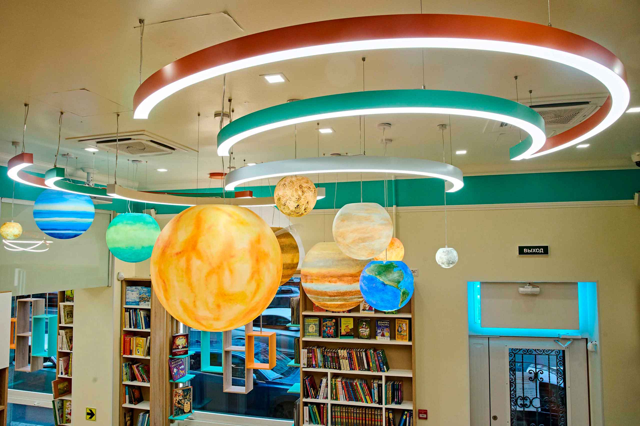 Сегодня современное культурное пространство библиотеки украшают яркие стеллажи, светильники в форме планет и летающих книг. Юных гостей и их родителей радует большой выбор литературы. В библиотеке, впрочем, можно найти не только книги на любой вкус, но и перейти от теории к практике – поставить опыт, провести эксперимент в пространстве «Лаборатория книжных героев». Здесь есть масса возможностей для общения, творчества, учебы и даже путешествий по огромной России с помощью уникальной интерактивной карты.