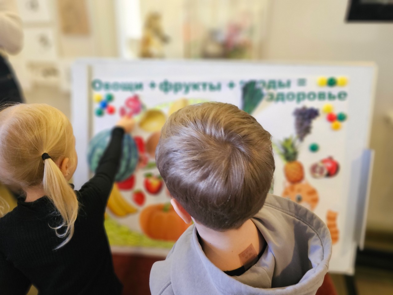 На интерактивном занятии «Овощи и фрукты — полезные продукты», посвященном здоровому образу жизни в библиотеке Кировских островов, ребята из детского сада «Sun School» узнали о том, чем полезны овощи и фрукты, какие в них содержатся витамины, а также много интересных и необычных фактов о самых разнообразных плодах.
