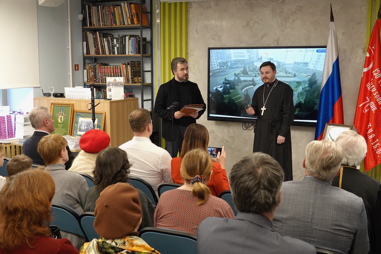 Общество ревнителей памяти свщмч. Вениамина (Петроградского). Дмитрий Павлович Беляев рассказал о том, как в его семье хранились святые реликвии, частицы риз святителя Тихона, Патриарха Московского и всей России, 100-летия со дня блаженной кончины которого празднует Церковь в 2025 году, и в августе 2024 года при содействии Общества ревнителей памяти свщмч. Вениамина (Петроградского) после архиерейского богослужения в Исаакиевском кафедральном соборе они были переданы приходу собора. Председатель Общества ревнителей памяти свщмч. Вениамина (Петроградского) Владимир Юрьевич Лыпарь рассказал о начале работ по созданию памятника над родовым склепом рода Беляевых на кладбище Троице-Сергиевой пустыни. Один из организаторов памятных мероприятий с исполнением оратории «Страдалец до Голгофы», которые ежегодно проводятся 13 августа в память о свящмч.Вениамине (Петроградском), правнучка протоиерея Петра Ивановского Любовь Александровна Ивановская рассказал об особой роли рода Беляевых и Михаила Ефимовича Губонина в сохранении архив Патриарх Тихона, который в начале 90-х годов был передан в Свято-Тихоновский университет.