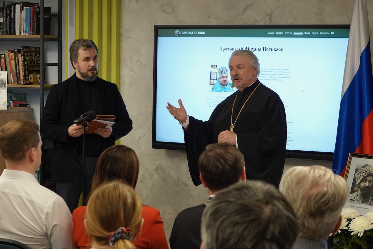 Военное Духовенство. Духовник Военного благочиния Санкт-Петербургской епархии, настоятель храма св. равноап. кн. Владимира при Окружном военном клиническом госпитале № 442 г. Санкт-Петербурга и приписного к нему храма св. страстотерпца царя Николая на Суворовском проспекте митрофорный протоиерей Михаил Погиблов поздравил присутствующих с Антипасхой (воспоминанием уверения апостола Фомы), рассказал об особой роли самоотверженного служения выдающейся личности генерала И. Т. Беляева, как одного из ярких представителей русской эмиграции, в деле возрождения нашей страны и обогащения мирового наследия.