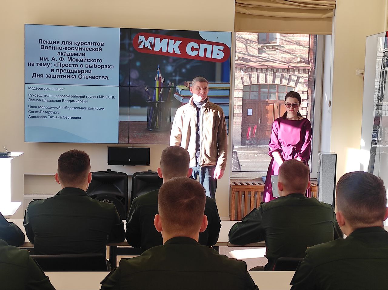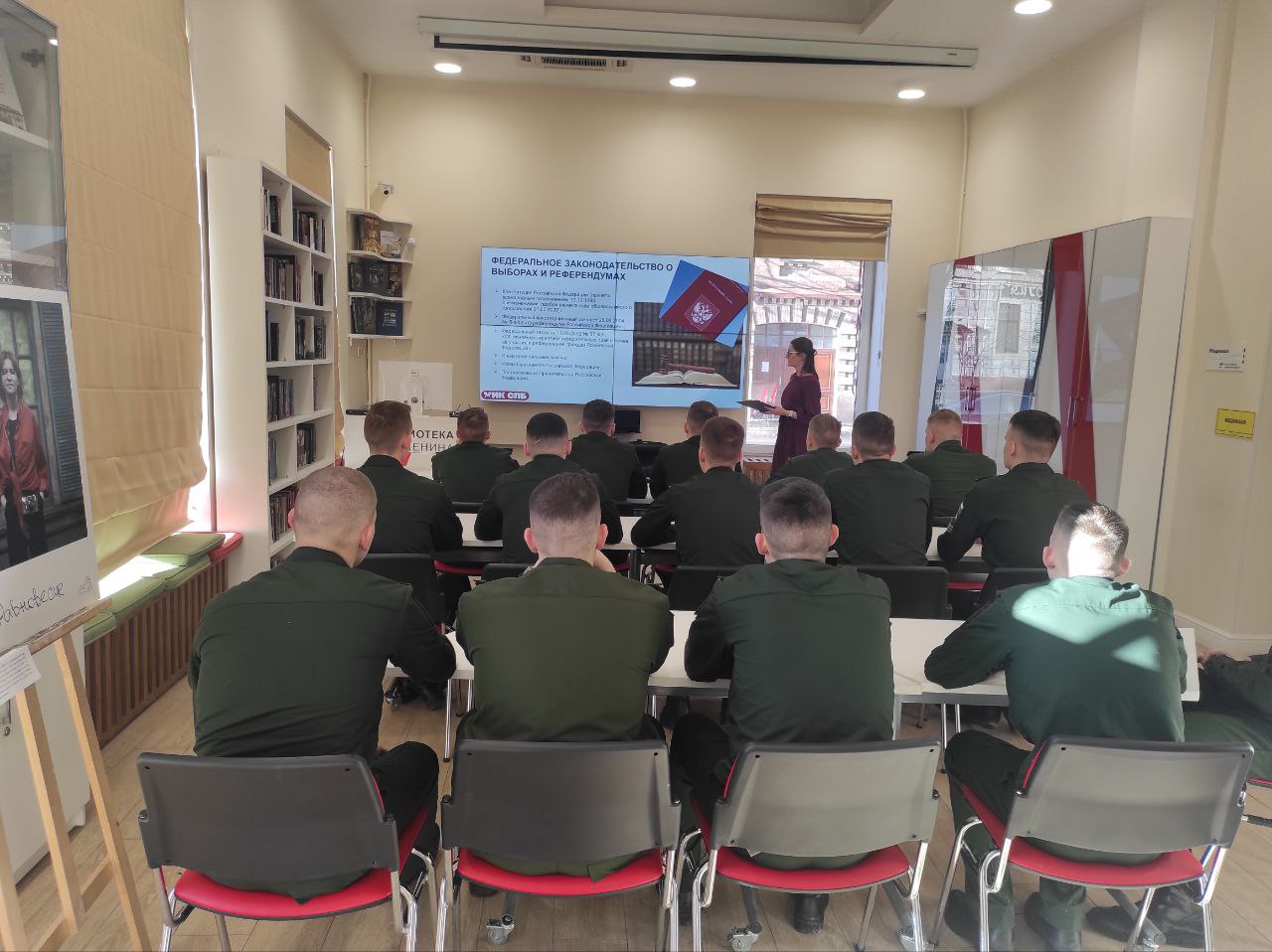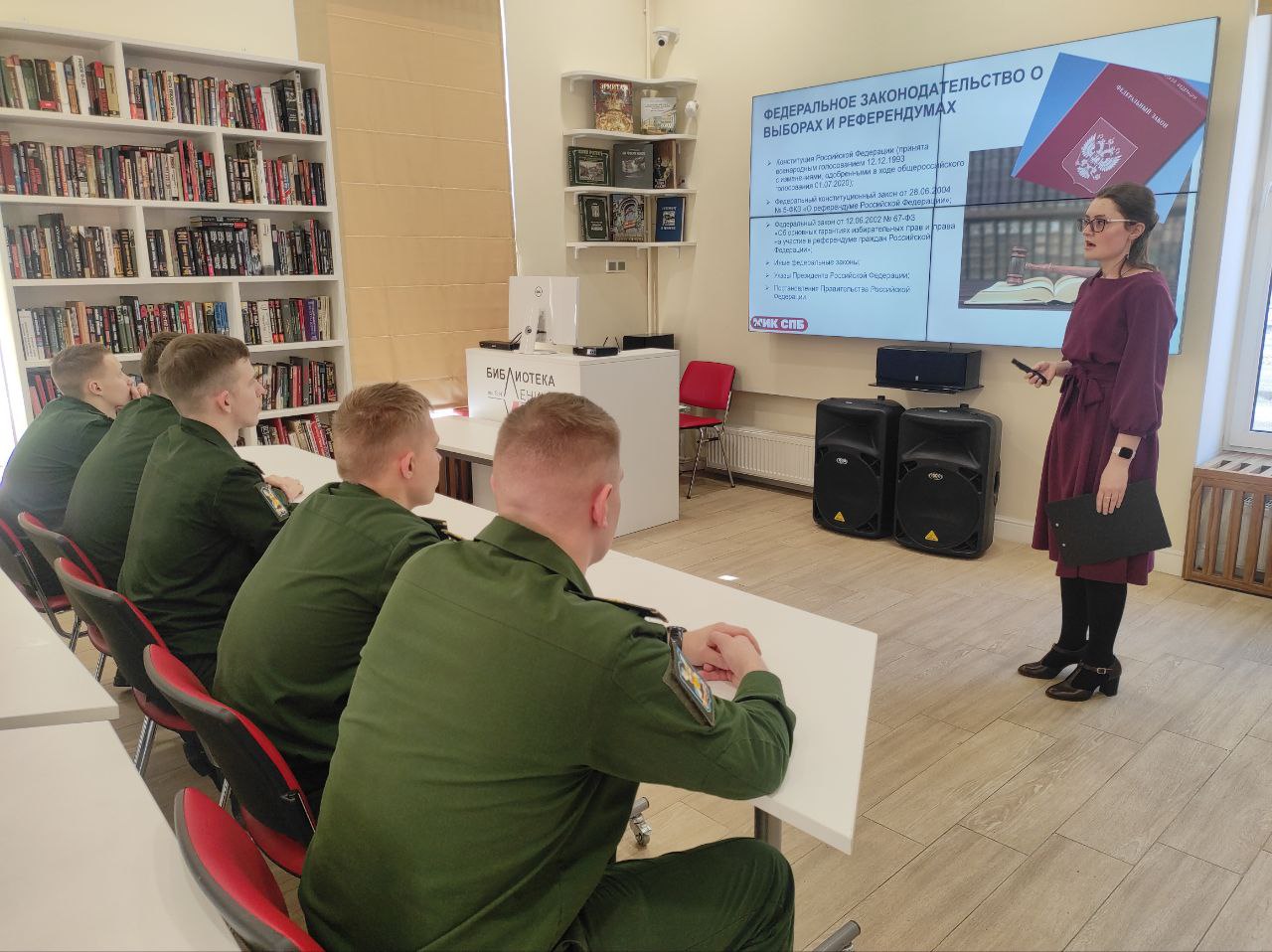 19 февраля в библиотеке имени В. И. Ленина (ул. Воскова, д.2), в преддверии Дня защитника Отечества, состоялась лекция для курсантов Военно-космической академии имени А. Ф. Можайского на тему «Просто о выборах».