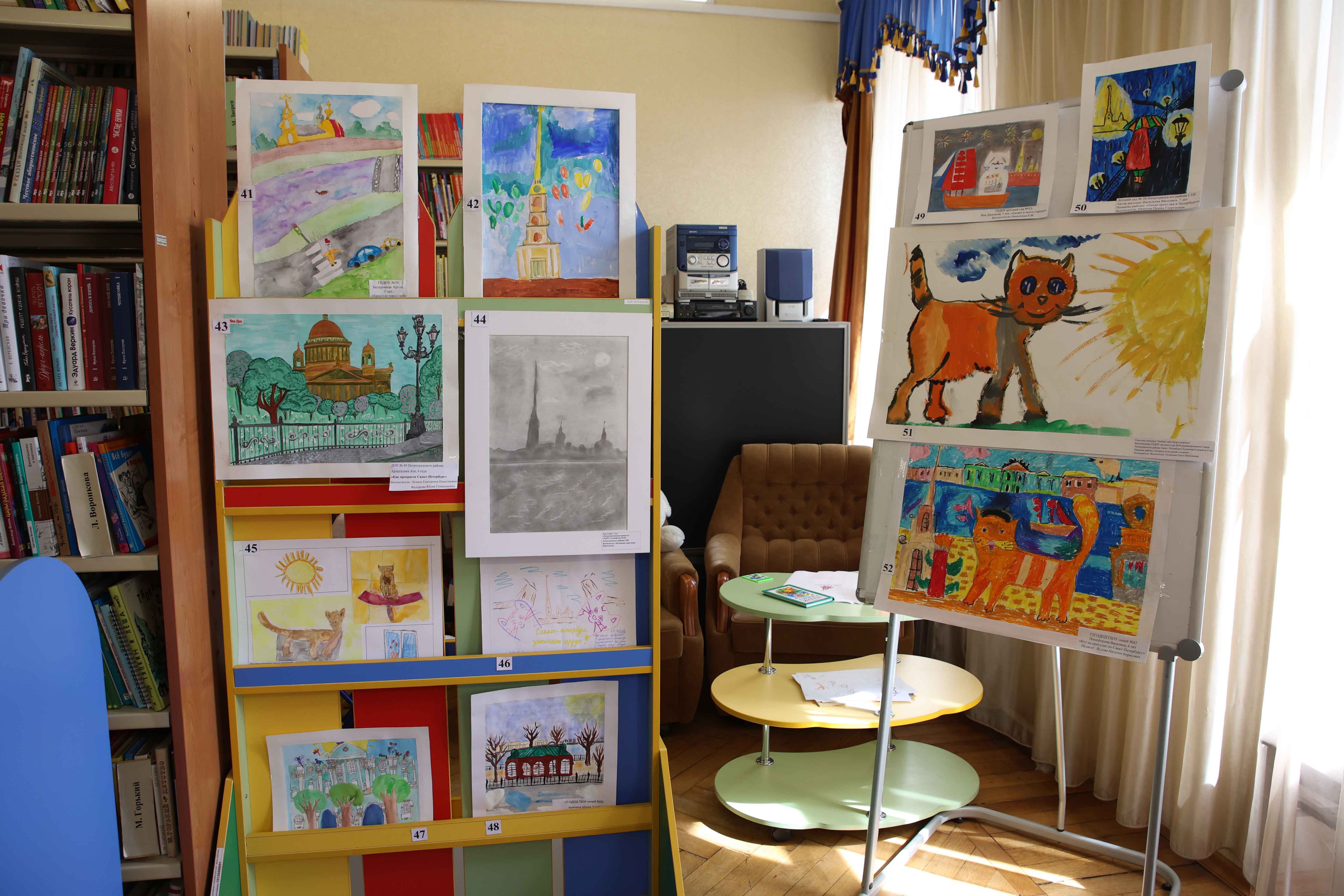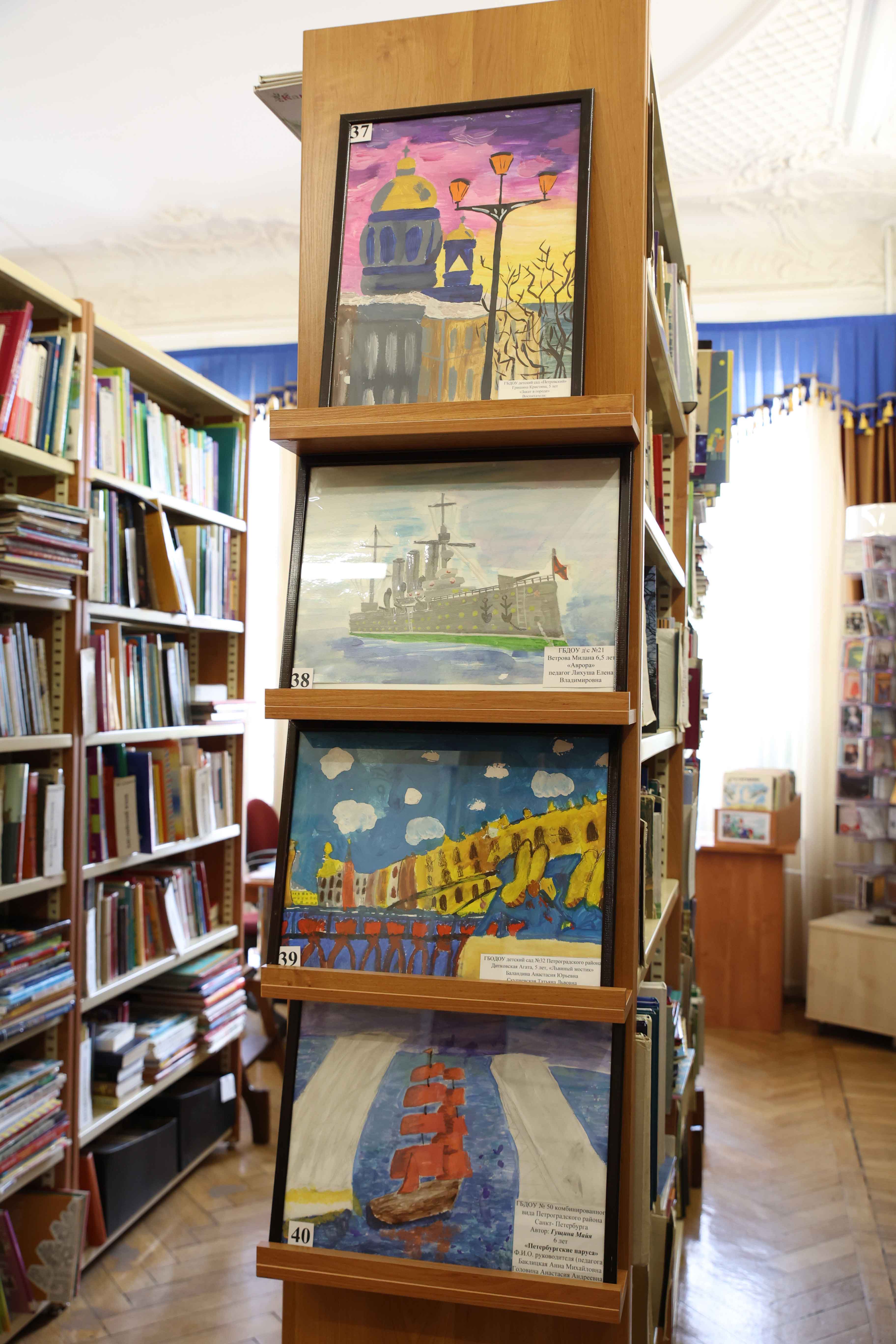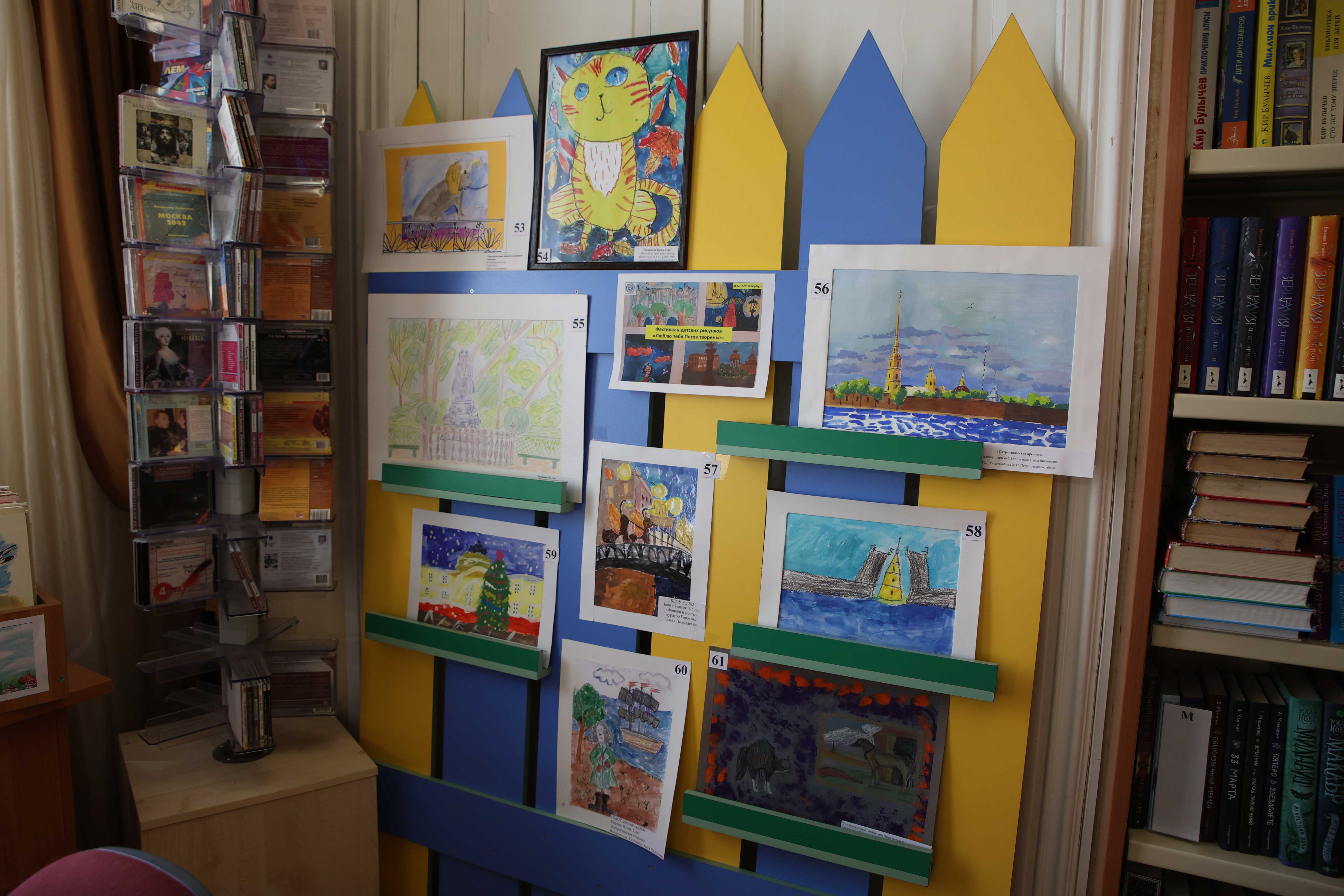 В Юношеской библиотеке имени А. Гайдара (Большой пр.П.С., д.18) продолжает работу выставка творческих работ, которая была организована в рамках Фестиваля детских рисунков «Люблю тебя, Петра творенье…», посвящённого 320-летию основания Санкт-Петербурга.