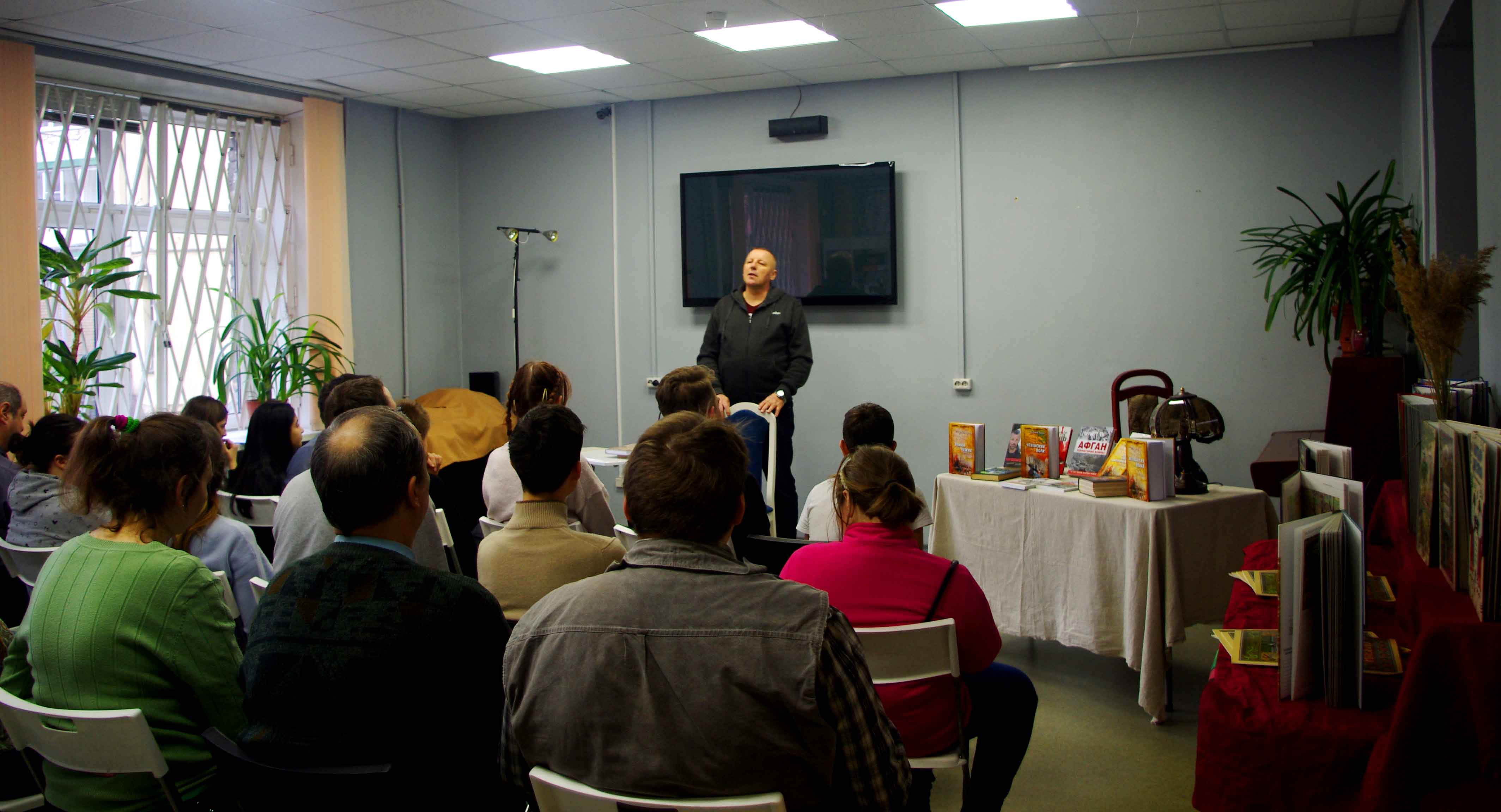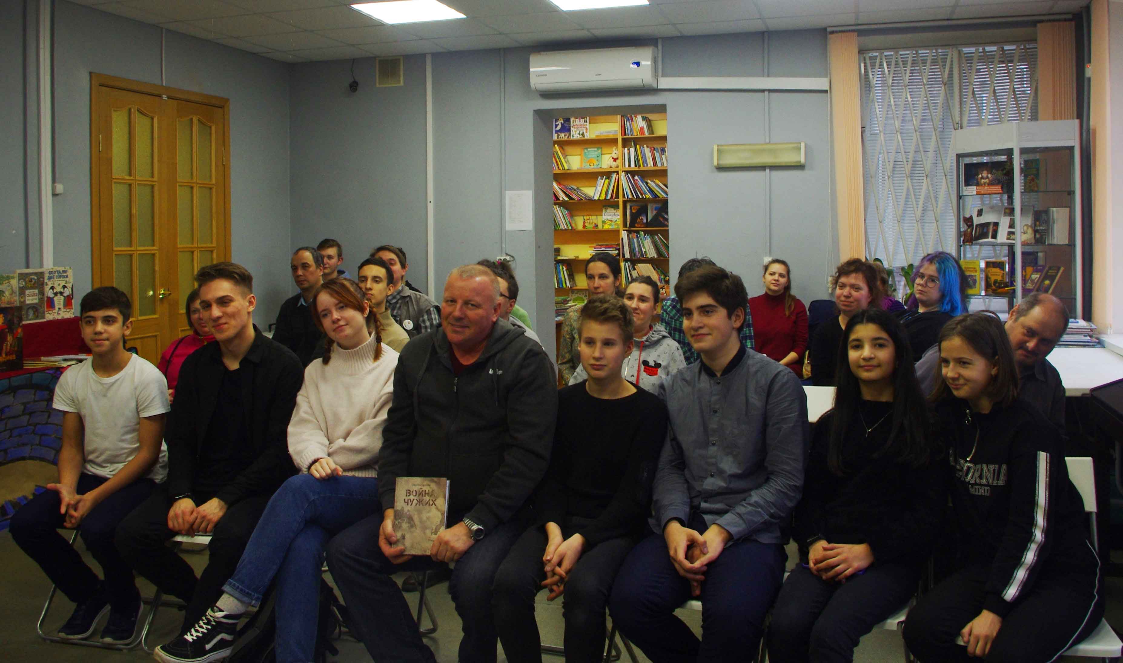 Будучи членом Союза писателей России и автором нескольких книг об Афганистане, Чернобыле и Чечне, Сергей Владимирович обращался к своим произведениям, сюжеты которых были взяты из реальной жизни. Рассказчик, говоря о войне, избегал жестких сцен, но, тем не менее, все сказанное не оставляло слушателей равнодушными. История собаки, которая из обстрела выбралась поседевшей, тронула всех сидящих в зале. Сергей Гуляев ответил на вопросы подростков и подарил библиотеке свои книги. Такие встречи являются доказательством того, что большая история – это не достояние архивных хранилищ, а множество судеб обычных людей, живущих рядом.