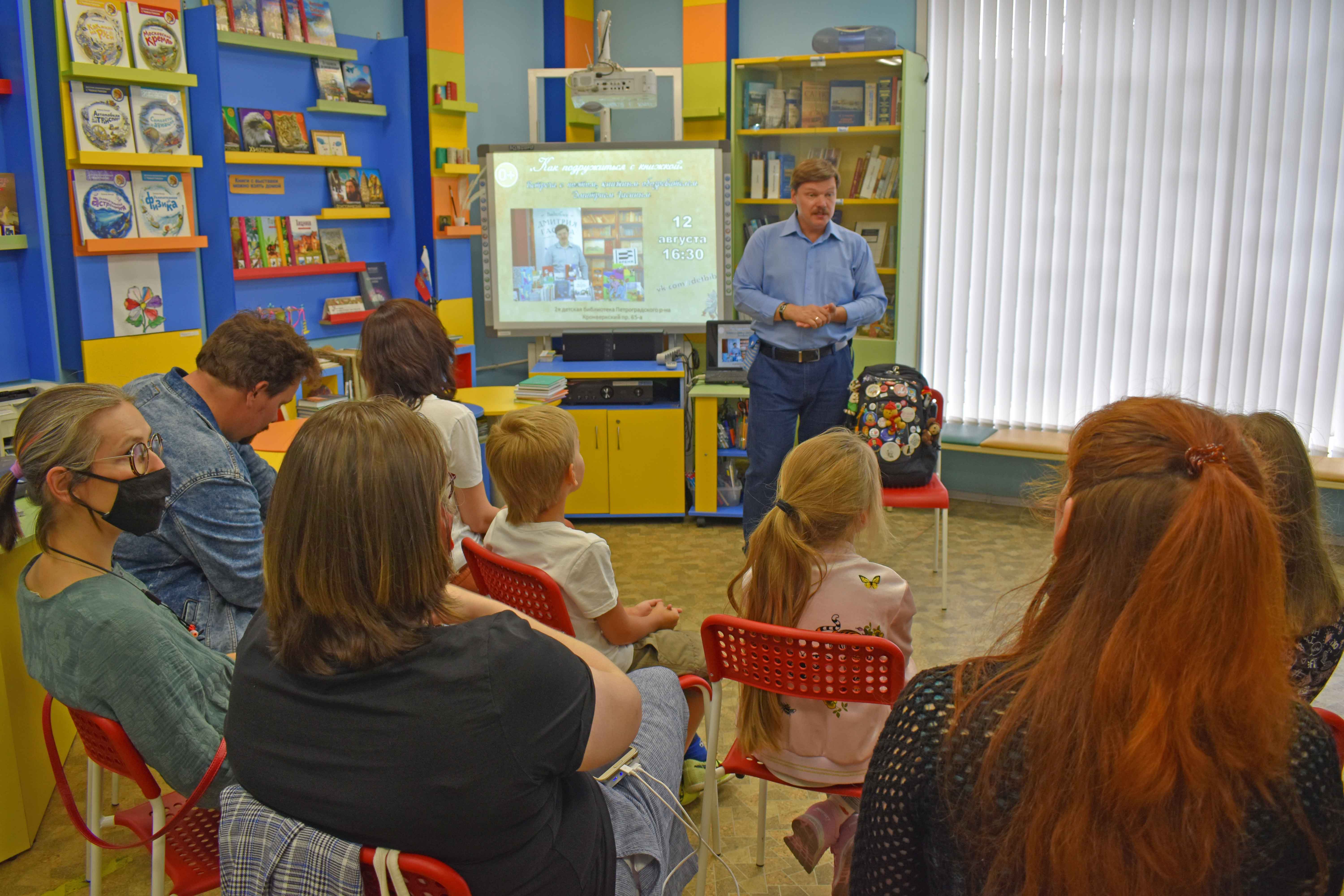 В легкой и непринужденной беседе он рассказал собравшимся об интересных новинках детской литературы, дал рекомендации взрослым слушателям о том, как привить детям любовь к чтению. Особо обсудили проблему "клипового мышления" и зависимости от гаджетов. В современном мире дети больше любят смотреть движущиеся картинки, чем читать книжки. Дмитрий рассказал о личном опыте, как открыл дочке волшебный мир книг. «Самое главное, — как говорит Дмитрий Гасин — чтобы книга была интересна ребёнку, и тогда он полюбит чтение на всю жизнь!».