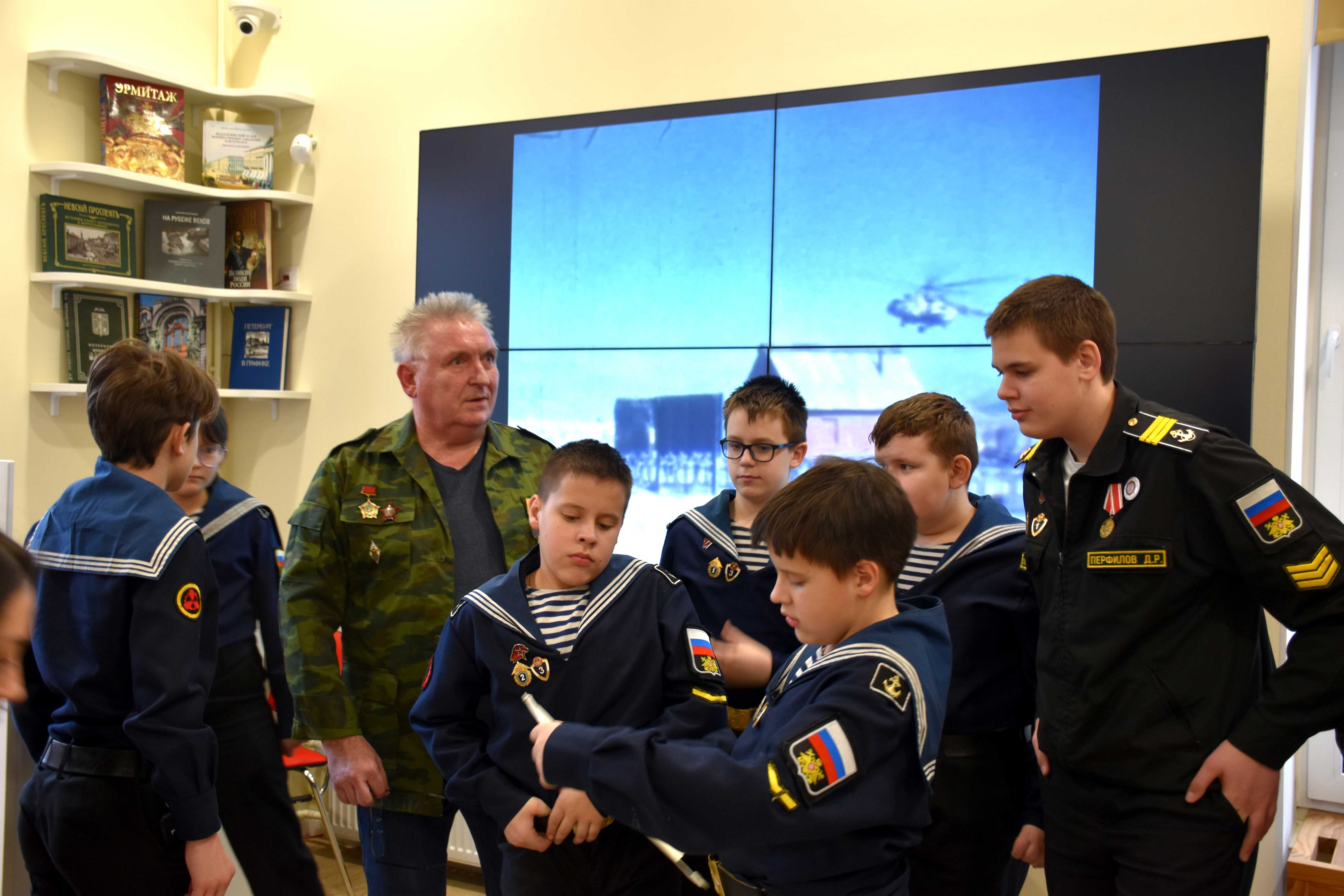 1 марта в библиотеке имени В.И. Ленина (ул. Воскова, д. 2) учащиеся морских классов ГБОУ СОШ № 84 им. П.А. Покрышева Петроградского района встретились с уникальным человеком – подполковником, участником боевых действий в военном конфликте на территории Демократической Республики Афганистан, военным медиком, ведущим хирургом баграмского медицинского батальона, кавалером ордена Красной Звезды Николаем Георгиевичем Григорьевым. Встреча приурочена к 35 годовщине вывода советских войск из республики Афганистан (1979 г.).