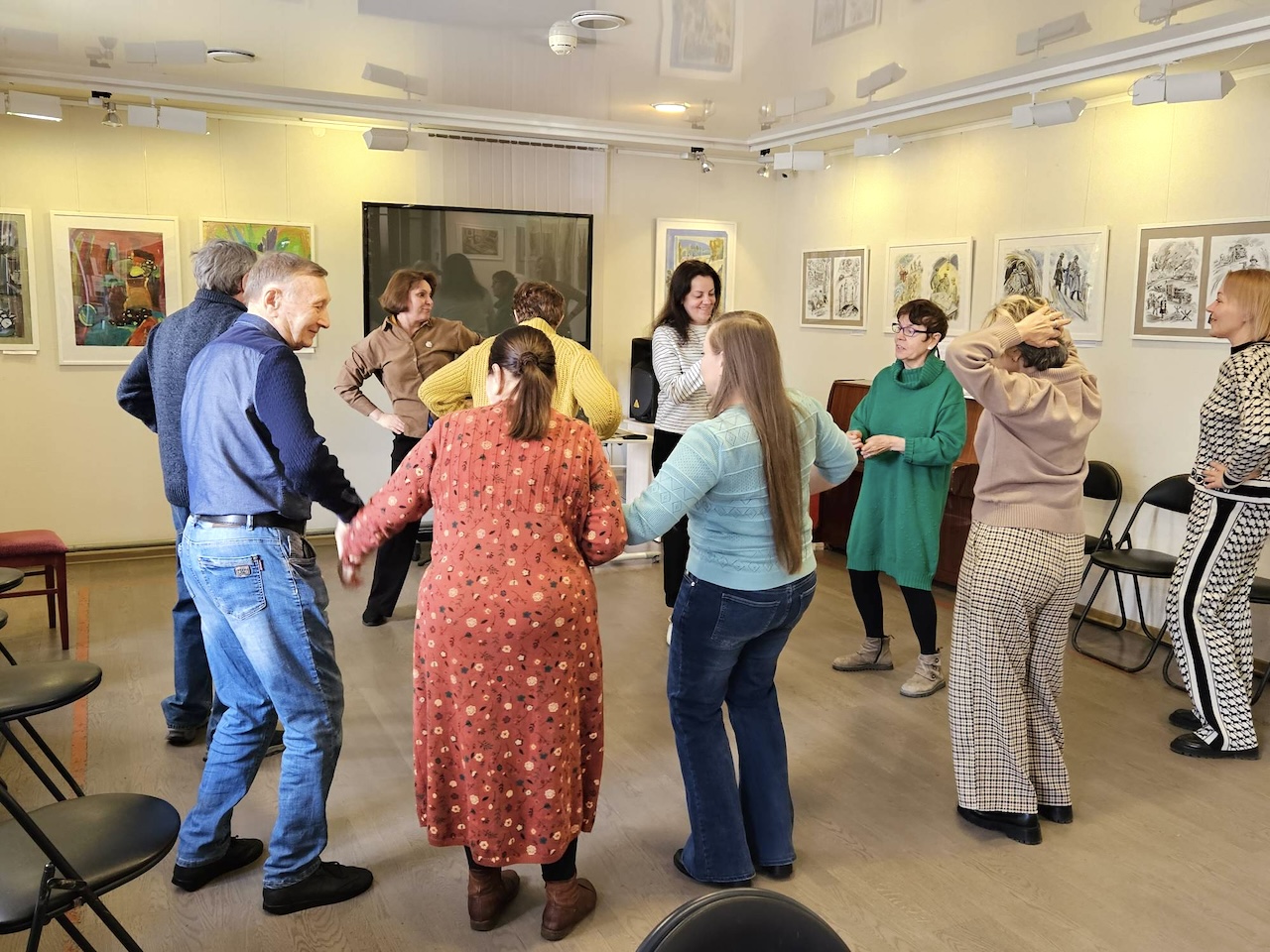 По традиции участники клуба выполняли оздоровительные гимнастические упражнения, оказывающие бодрящее и тонизирующее влияние на нервную систему. Участникам особенно понравилось двигаться под ритмичную, задорную музыку — они разучили веселые танцевальные движения танца «Макарена».
