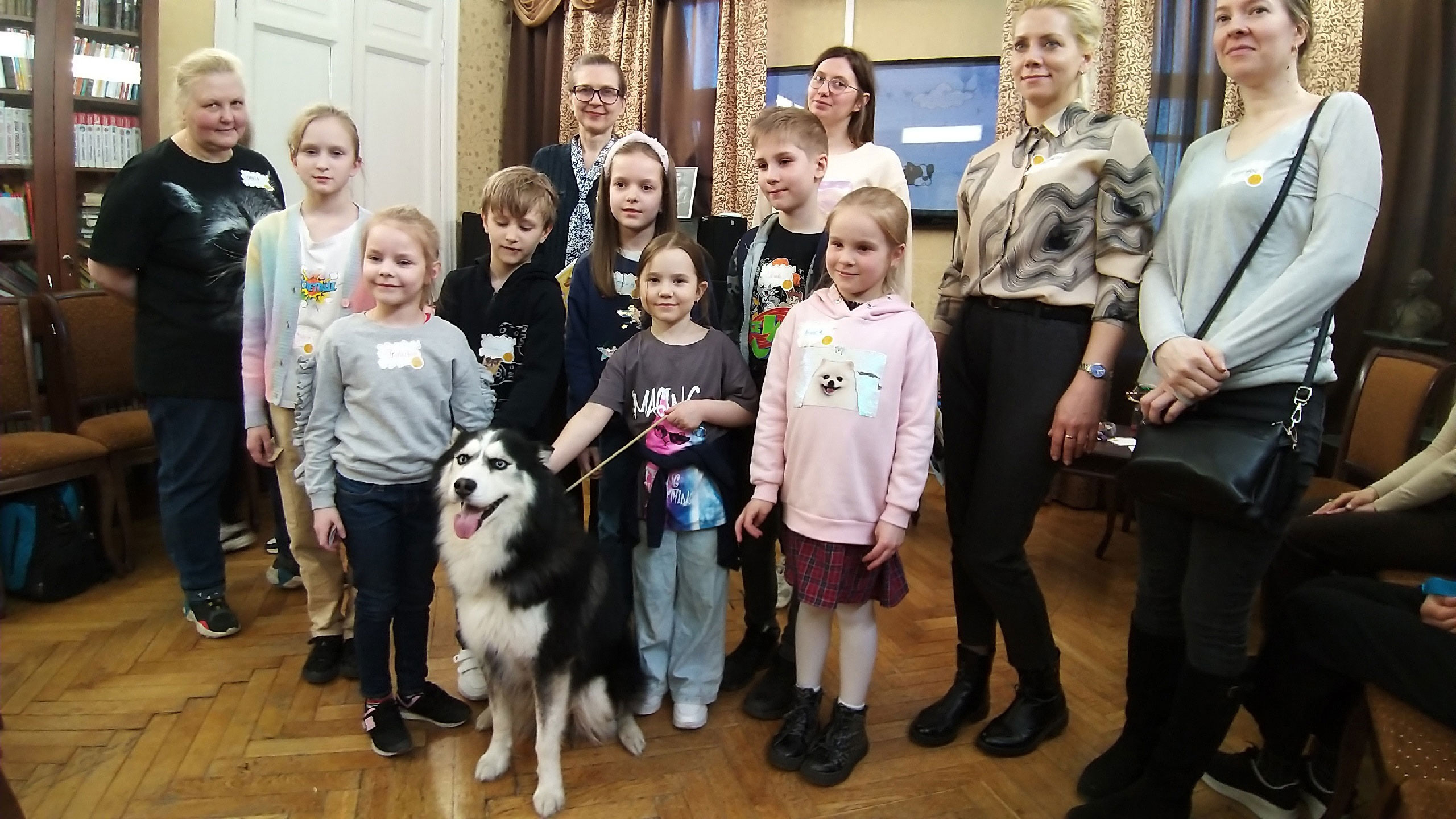 Больше всего детям понравилось общаться с главным участником встречи – собакой породы сибирский хаски по кличке Грей. Грей с радостью общался с детьми и взрослыми, разрешал себя гладить и, с разрешения хозяина, с огромным удовольствием брал угощение из рук детей.