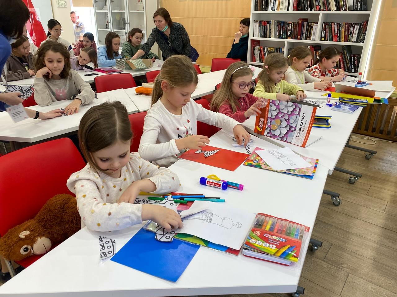 Ребятам было предложено почувствовать себя реставраторами, собрав из разрозненных бумажных фрагментов вазу, приклеить его на картон и раскрасить. Участники занятия смогли пофантазировать и дорисовать образ Венеры. Юные читатели предложили её осовременить, пририсовав ей атрибуты - наушники и смартфон.