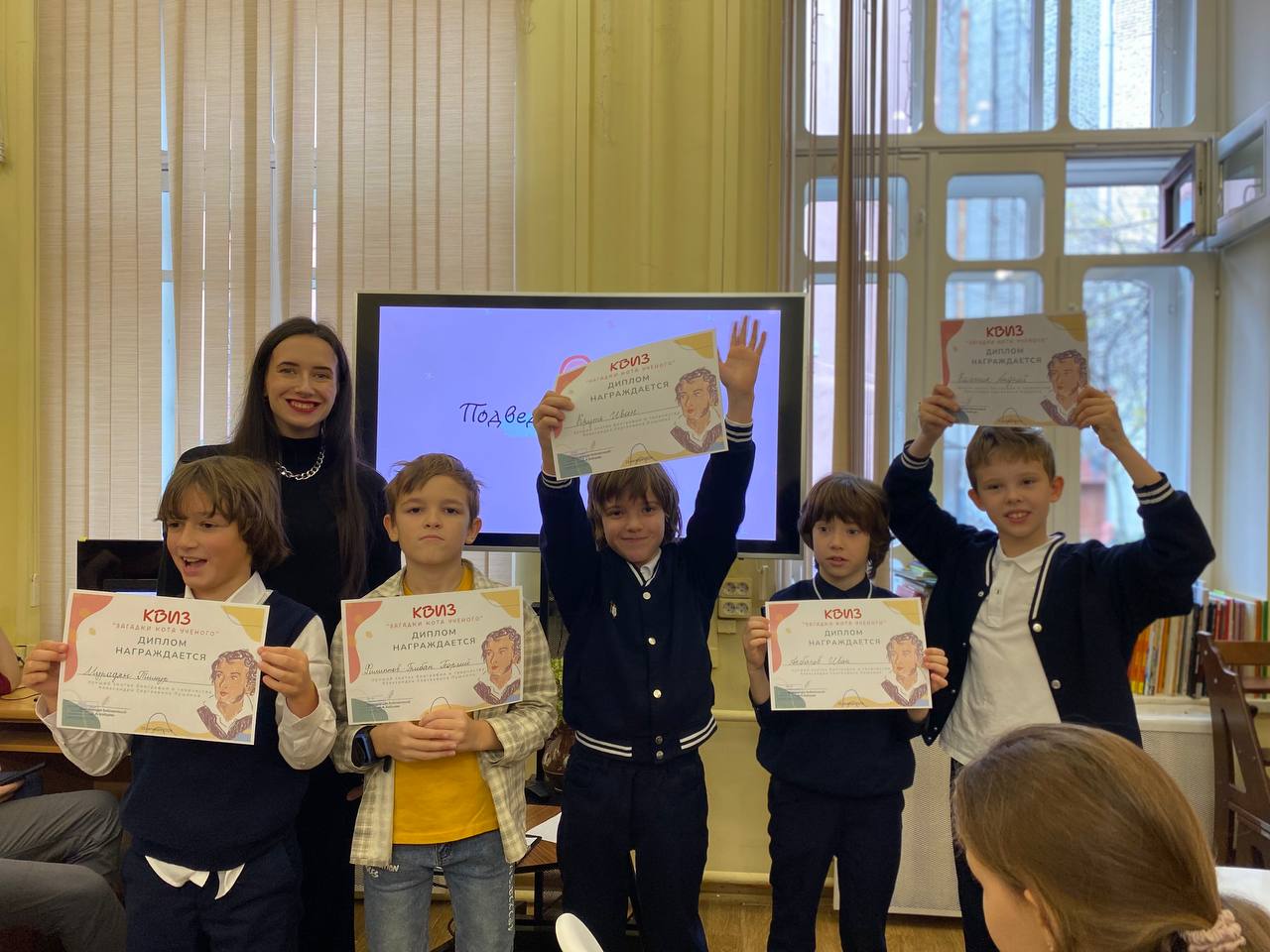 По итогам квиза «Загадки кота учёного» лучшая команда была награждена дипломами победителей, символизирующими их успех и знание творчества Пушкина. Каждый участник игры также получил памятные подарки от родительского комитета, что стало приятным дополнением к впечатлениям от мероприятия.