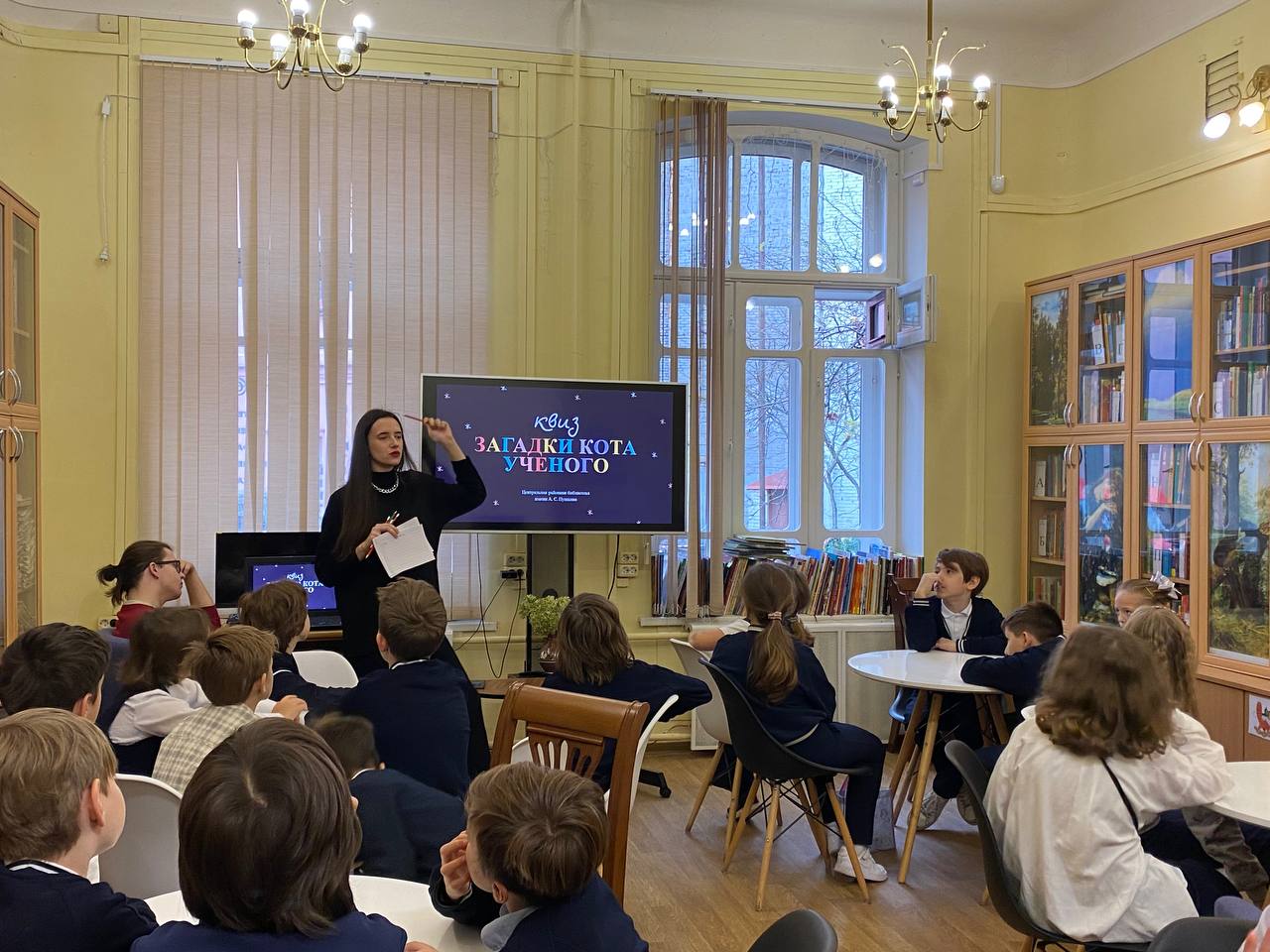 25 октября в Центральной районной библиотеке имени А. С. Пушкина (Большой пр. П.С., д. 73/36) состоялось интеллектуальное соревнование «Загадки кота учёного», посвященное 225-летнему юбилею Александра Сергеевича Пушкина. В мероприятии приняли участие ученики 3 класса школы №99 «СТАРТ», которые с азартом погрузились в мир творчества великого русского поэта.