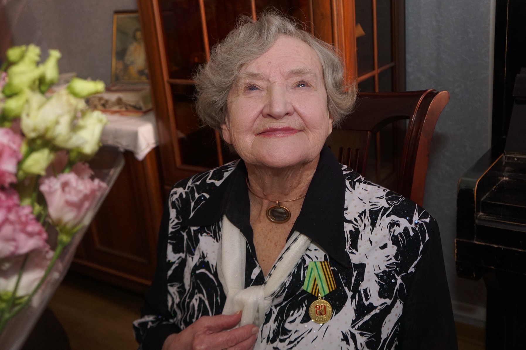 На вечере Ирине Евгеньевне была вручена юбилейная медаль «80 лет Победы», которую выпустило движение «Вечно живые». Медаль вручил председатель движения «Бессмертный полк Победы» Сергей Николаевич Бородулин. В заключении вечера Ирина Евгеньевна презентовала слушателям трогающую до глубины души кинохронику под поэму Влада Маленко «Говорит Москва».