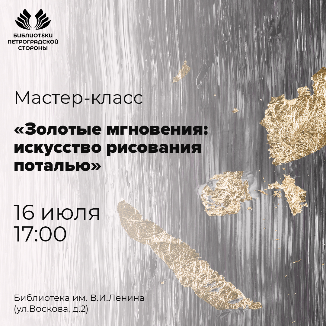 Приглашаем вас на уникальный мастер-класс по рисованию поталью, который состоится 16 июля в 17:00 в библиотеке имени В.И. Ленина! Это мероприятие станет отличной возможностью погрузиться в мир искусства и создать своими руками удивительные произведения с использованием блестящих украшений.