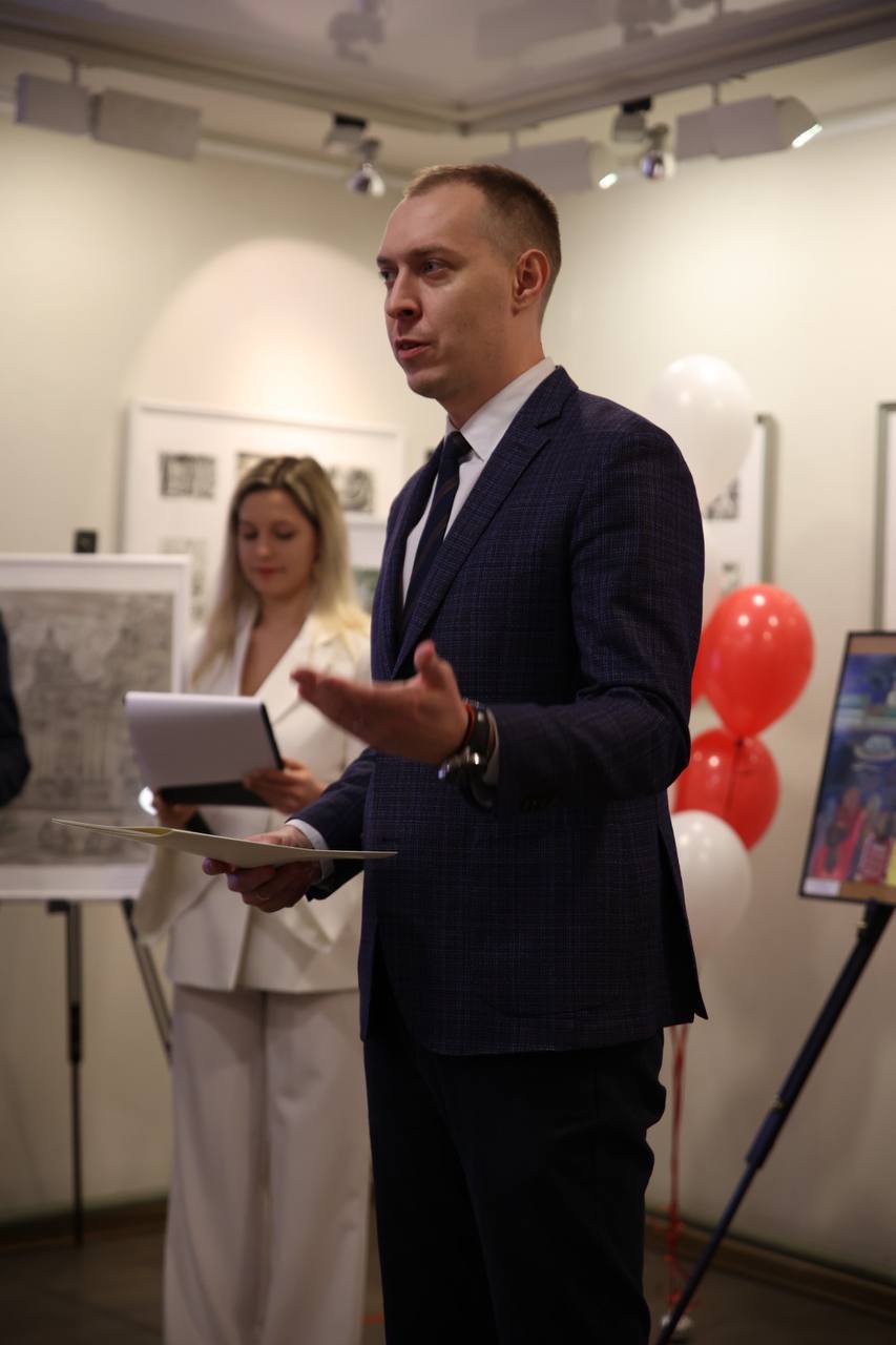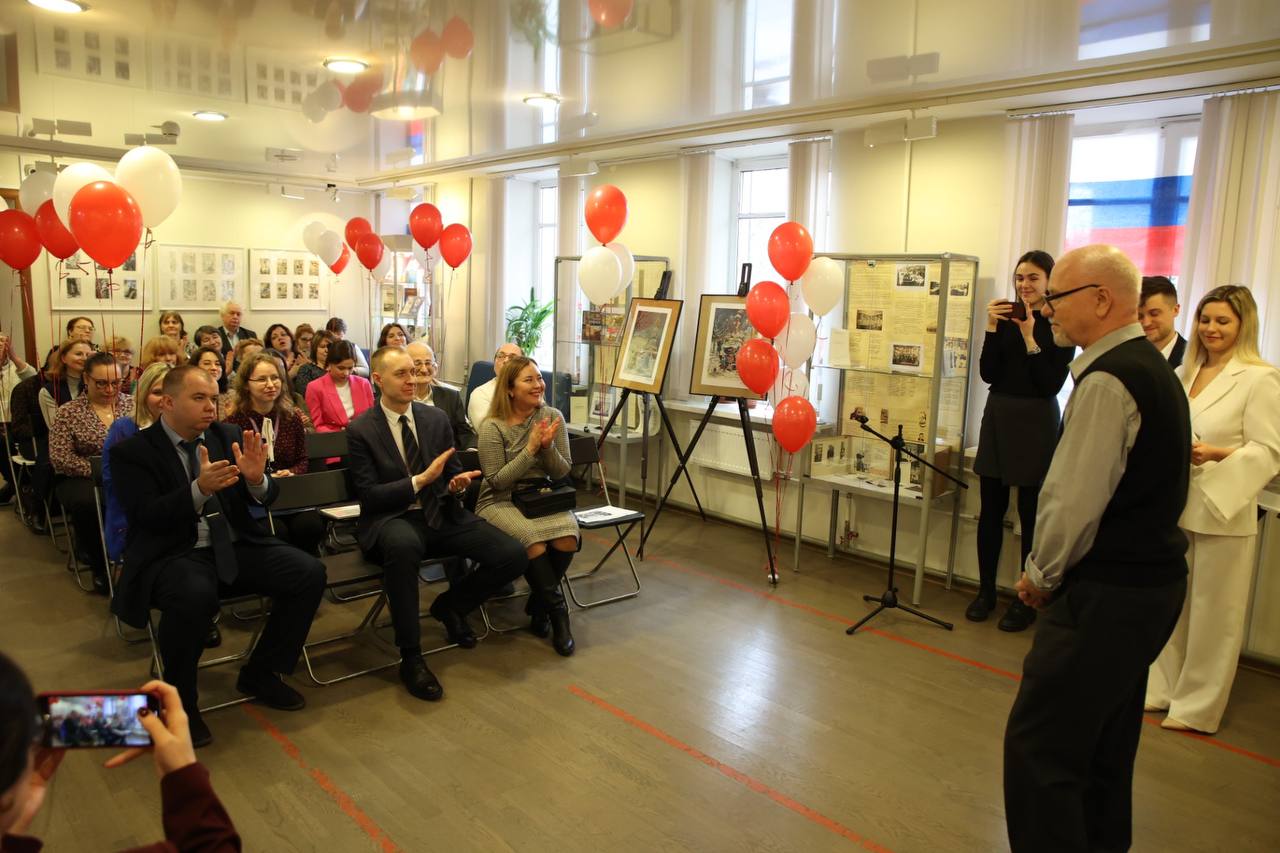 Также автор выставки не только лично поздравил коллектив, но и познакомил всех присутствующих с печатным гравюрным станком, созданным им самим. На этом станке каждый желающий мог сделать оттиск с чудесными видами Петербурга.