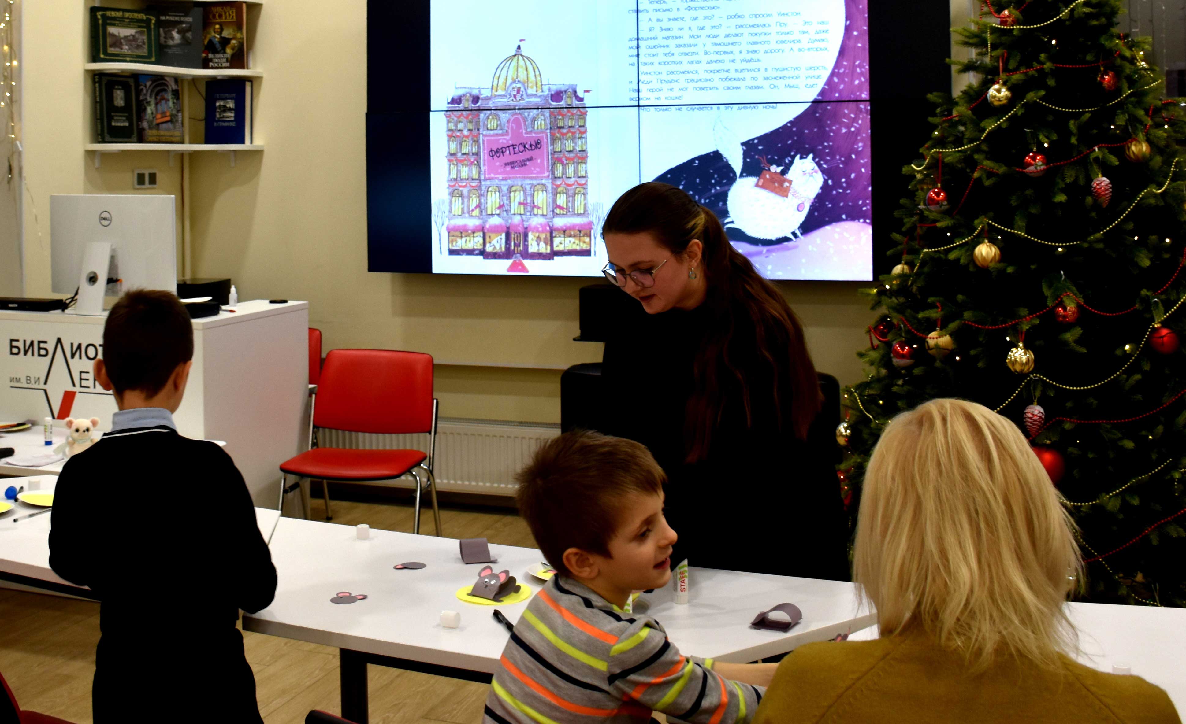 13 декабря в библиотеке имени В.И. Ленина (ул. Воскова, д.2) состоялось второе занятие «Рождественские хлопоты мышонка Уинстона» по мотивам книги А. Смита «Как Уинстон доставил Рождество» в рамках цикла интерактивных встреч «Время новогодних чудес».