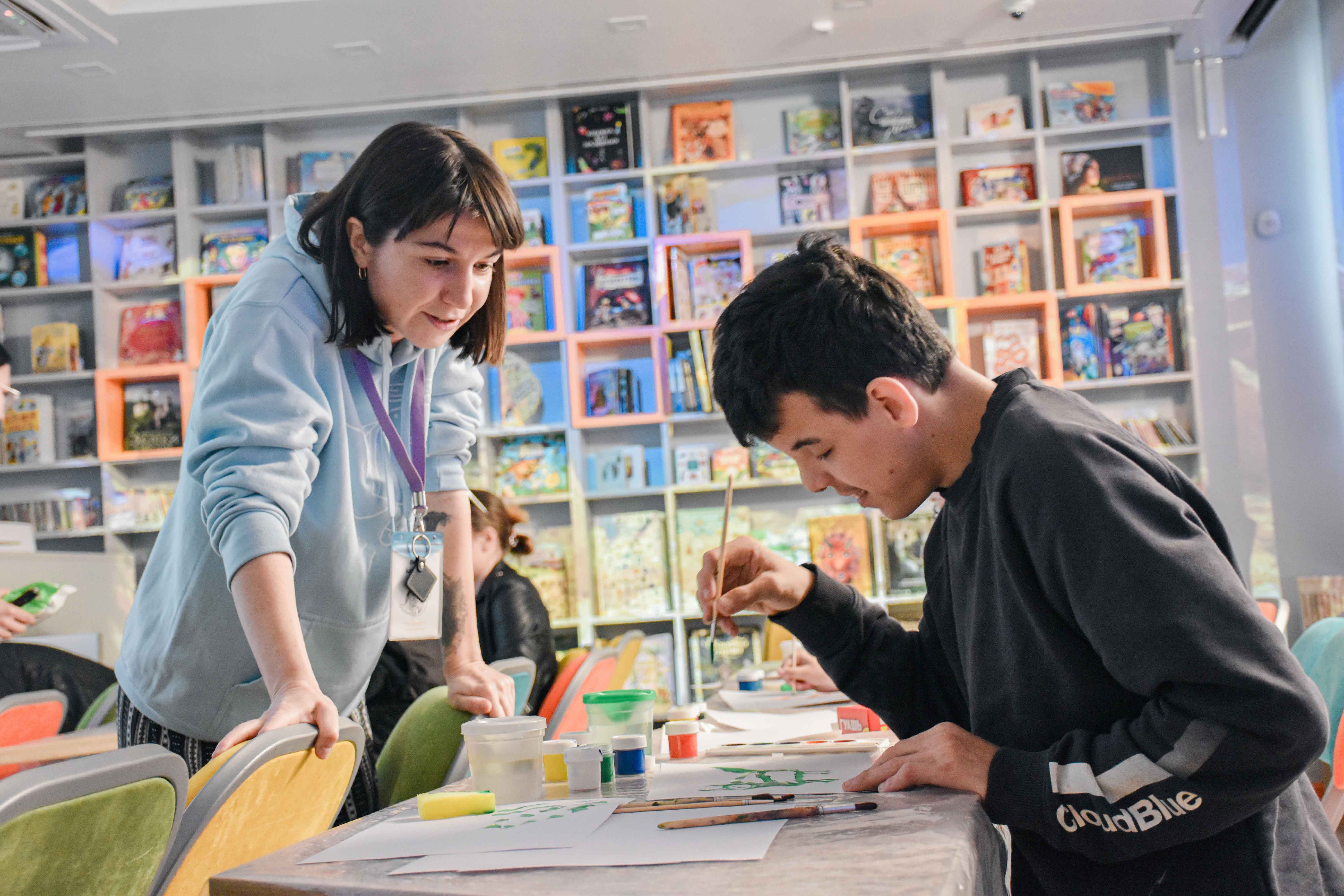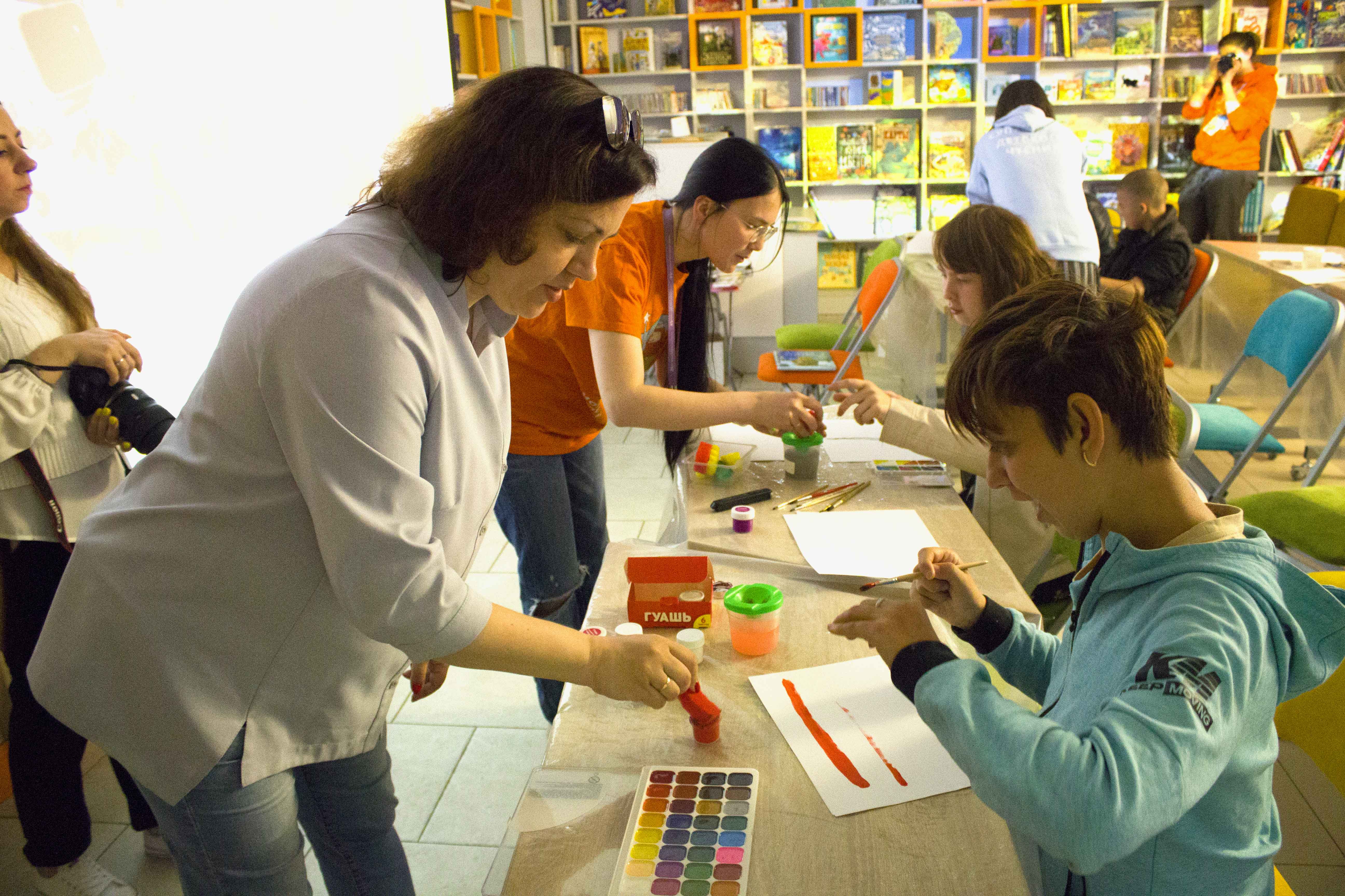 В медиазале ребята смогли совершить путешествие по книжным мирам при помощи интерактивного проекционного оборудования, а на арт-занятии «Тысяча и одно существо» познакомились с одноименной книгой, узнали интересные факты о животных, а также попробовали создать свои авторские иллюстрации животных.