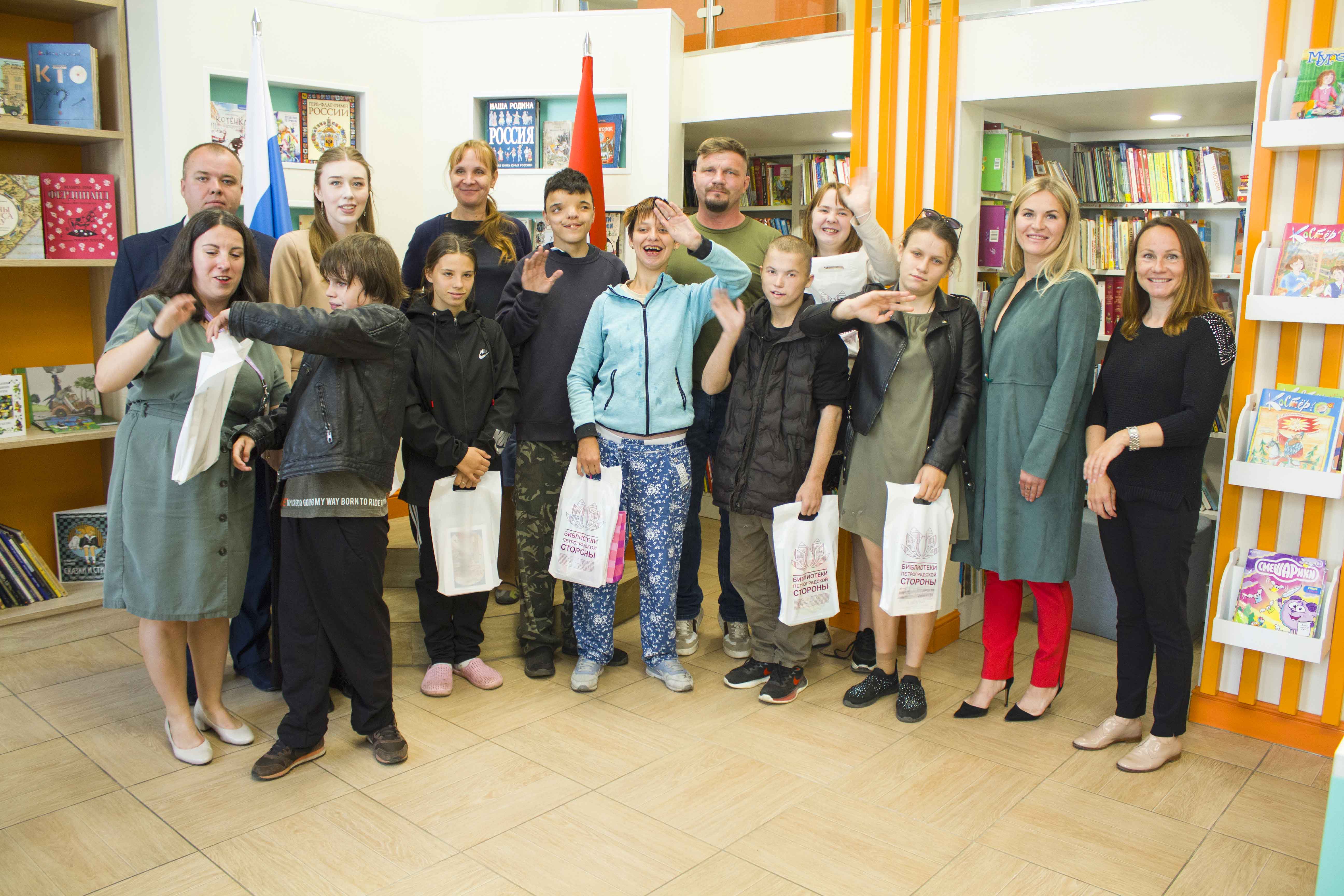 11 июля в Библиотеке книжных героев (ул. Ленина, д. 20) принимали «особенных» гостей. При поддержке благотворительного фонда «Моё большое сердце» 8 детей с ОВЗ из г. Алчевск (ЛНР) смогли посетить Санкт-Петербург и Петроградский район.
