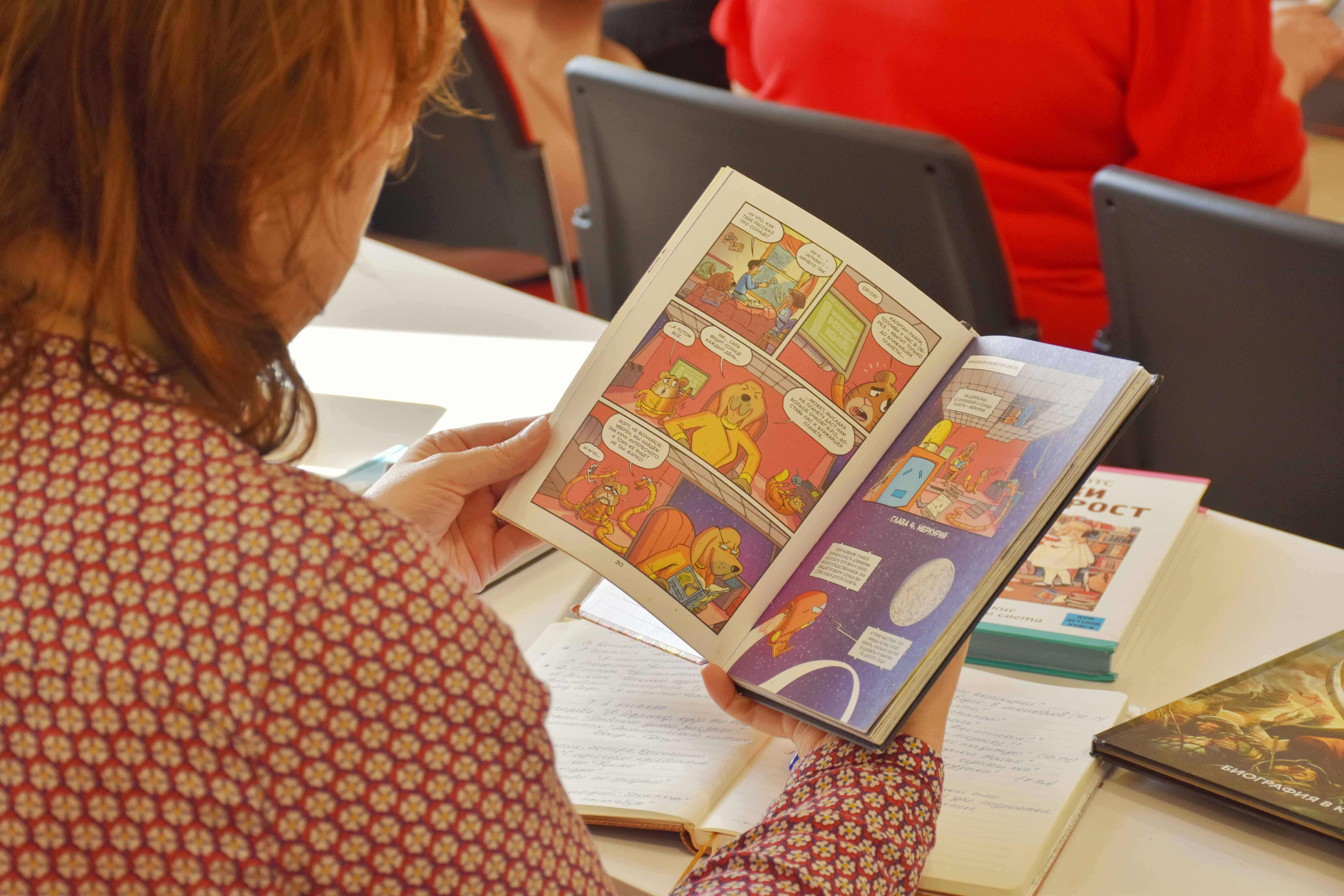 Книжные эксперты Библиотеки Ленина, которые практически ежедневно общаются со школьниками, поделились своими наработками. Лилия Быстрова рассказала об этом опыте, и у слушателей не осталось сомнений в ответе на вопрос - «Школа и городская библиотека: нужны ли мы друг другу?» Евгения Бирюлина давно занимается изучением комиксов и графических романов. Она рассказала об истории возникновения этого популярного жанра, о лучших произведениях в жанре японских черно-белых комиксов Manga т Веб-комиксов, которые публикуется в интернете.