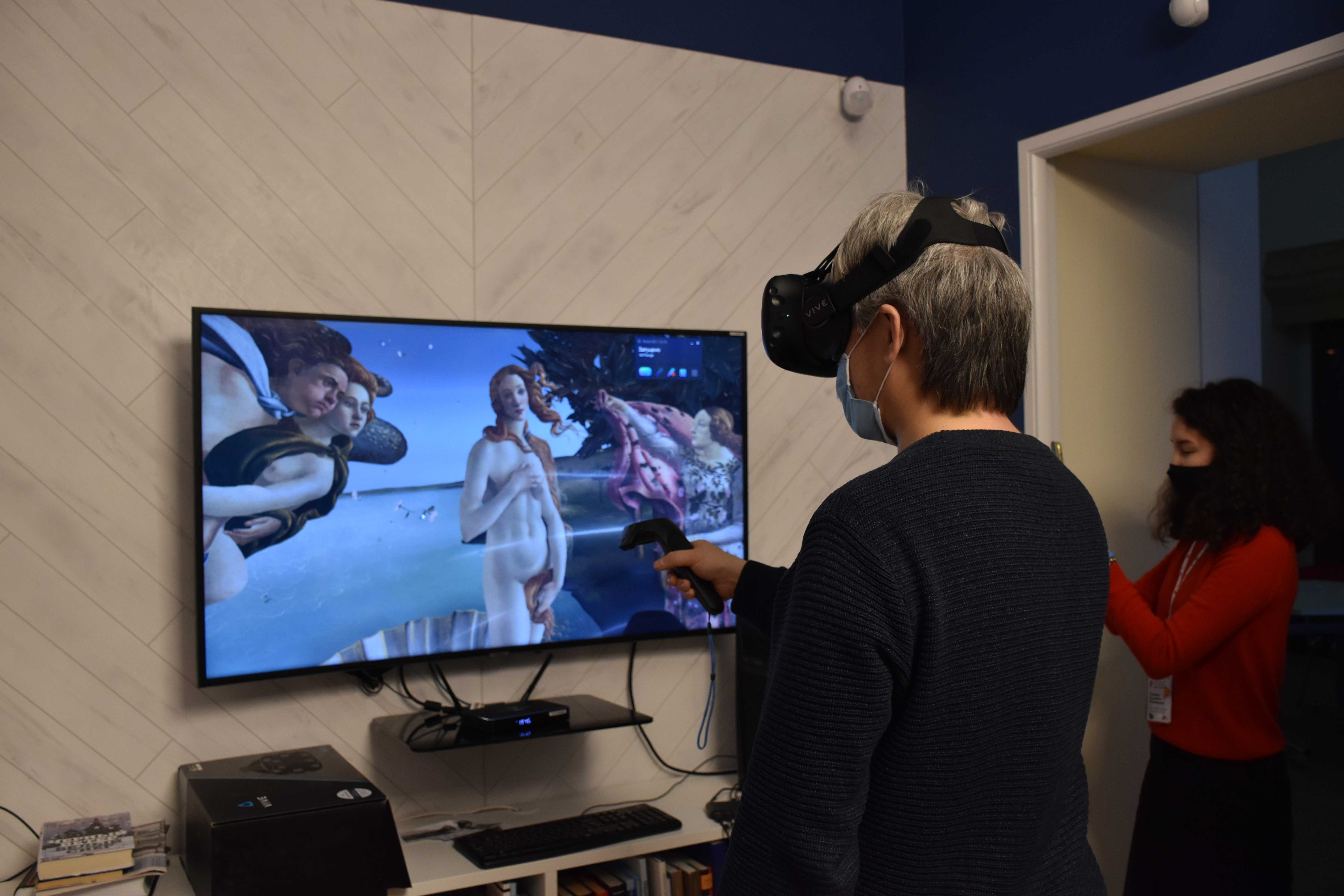 Оказаться внутри произведений других известных художников – Леонардо да Винчи, Сальвадора Дали, Сандро Боттичелли, Винсента Ван Гога – можно было при помощи технологий виртуальной реальности. Все желающие могли надеть специальные очки, побродить по виртуальному музею в темноте и зайти прямо внутрь картины, которая оживает: например, Мона Лиза двигается и умеет моргать, а у Венеры развеваются волосы.