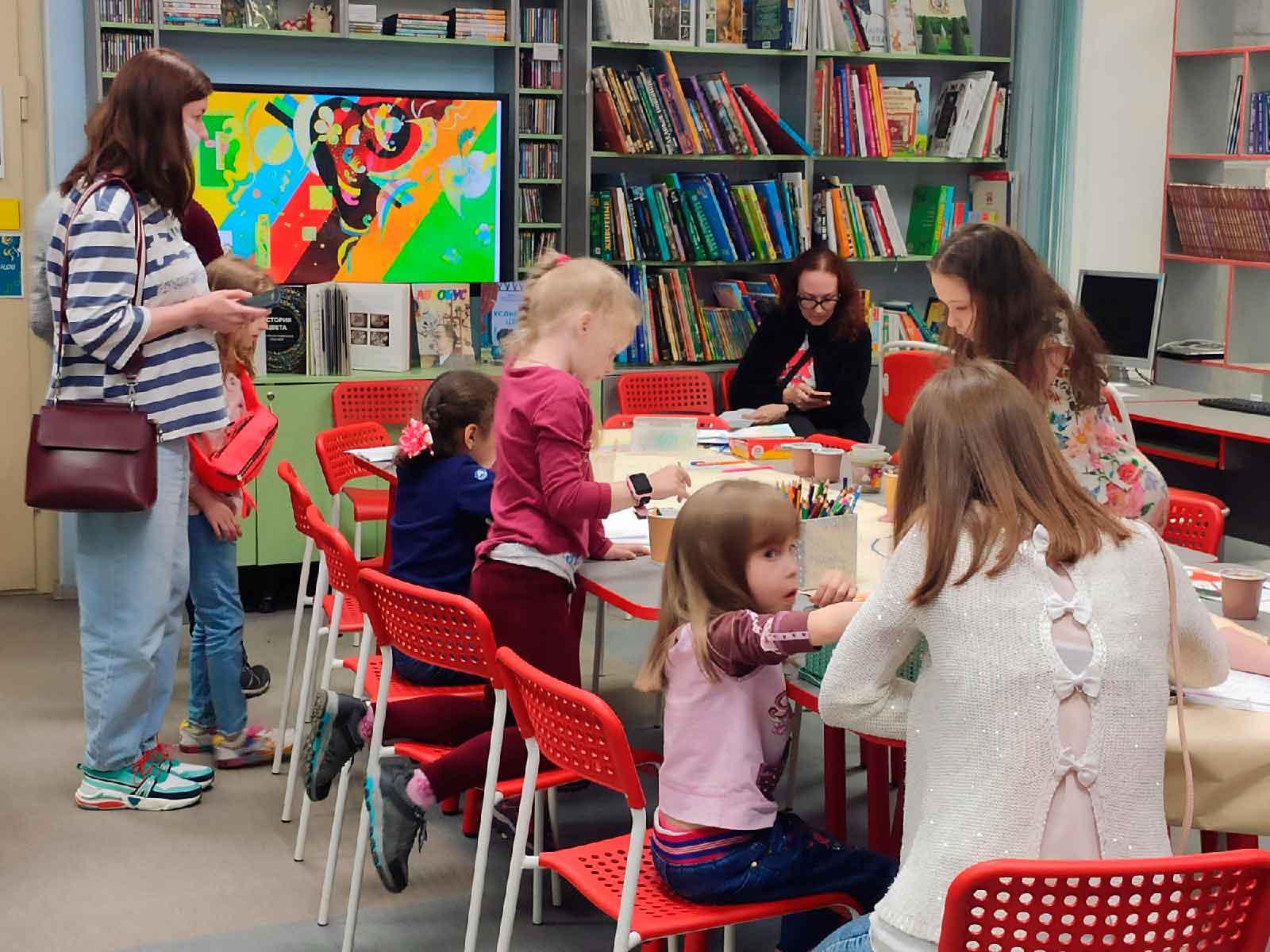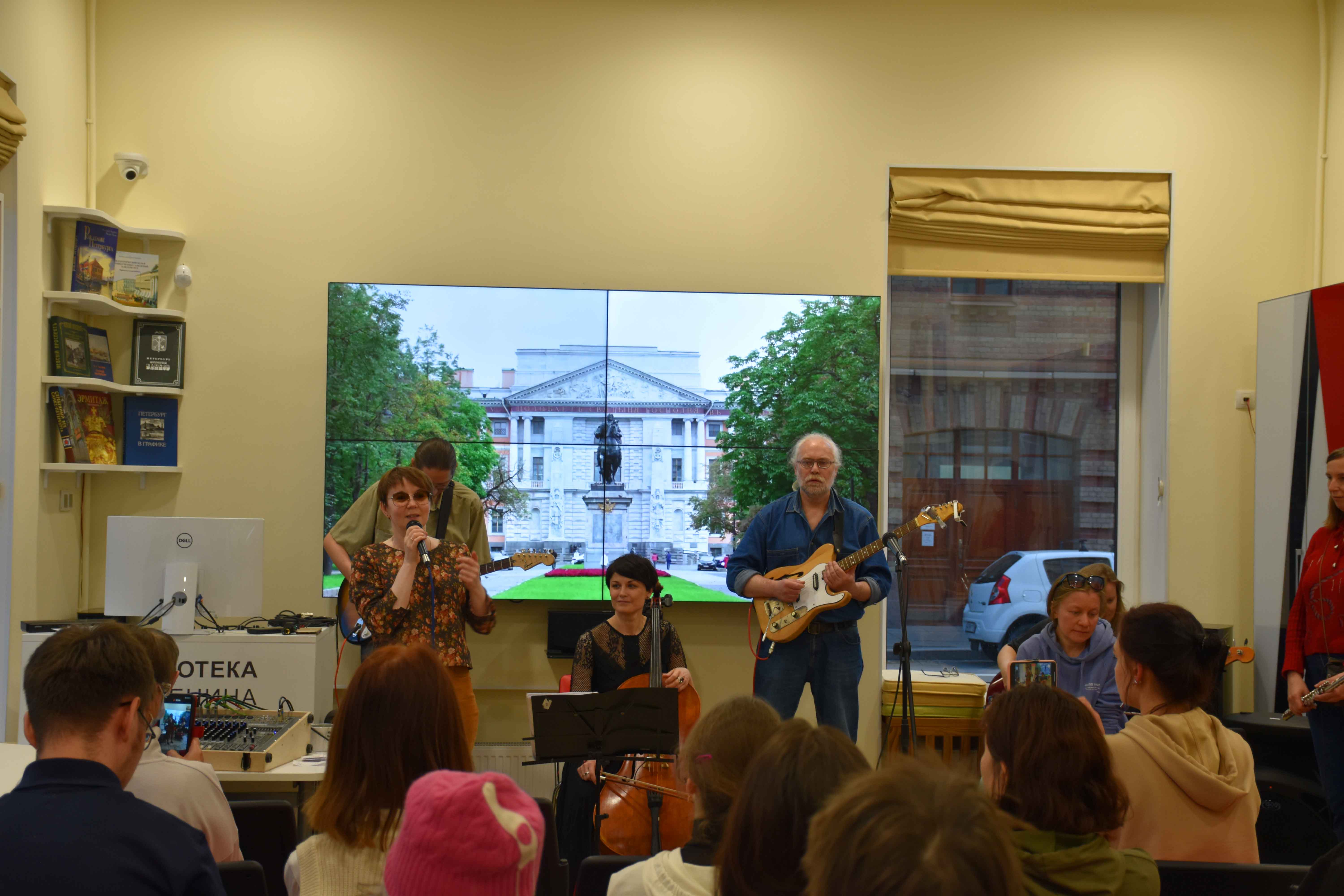 Библиотеки Петроградской стороны тоже распахнули двери для посетителей в неурочный час. Центральная районная детская библиотека (Большой пр.ПС, д.65) подготовила интерактивную программу "СоЗВУЧно с книгой" . Вы думаете, что библиотека - тихое место? На самом деле она наполнена звуками. И это не только шелест страниц! Участники программы смогли услышать голоса известных авторов, отгадать интонации любимых персонажей, почувствовать звучание цвета и попробовать изобразить музыку, как это делал Василий Кандинский. И даже сыграть в необычном ансамбле насекомых. Прекрасные студентки из училища им. Римского-Корсакова - Квартет Уникальных Девиц - исполнили всеми любимые музыкальные композиции из известных мультфильмов.