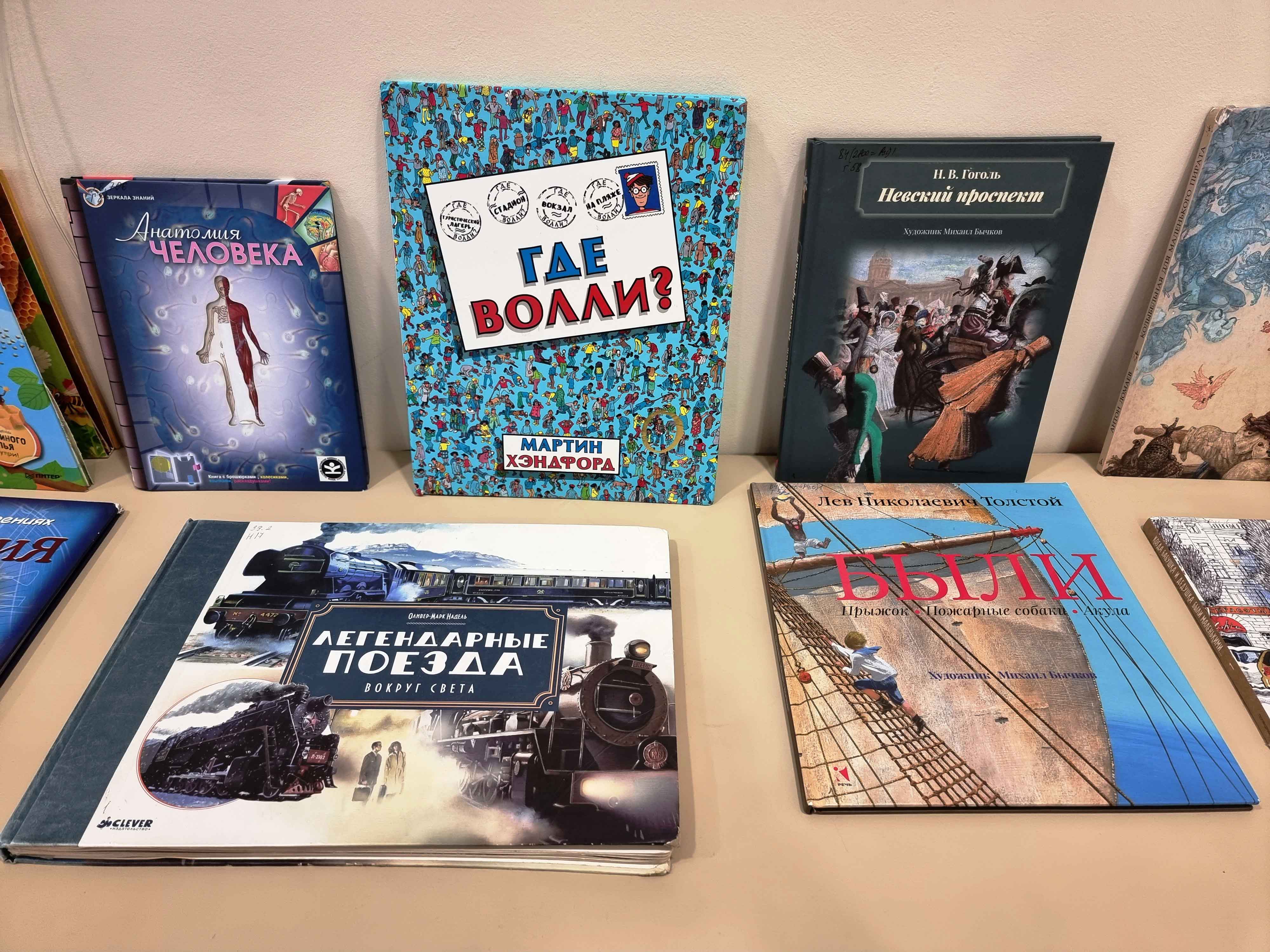 Студентам также были представлены книжные выставки, не только иллюстрирующие и дополняющие обзор, но и демонстрирующие разнообразие изданий: книги-панорамы, нестандартные форматы, книги-картинки, виммельбухи и др.