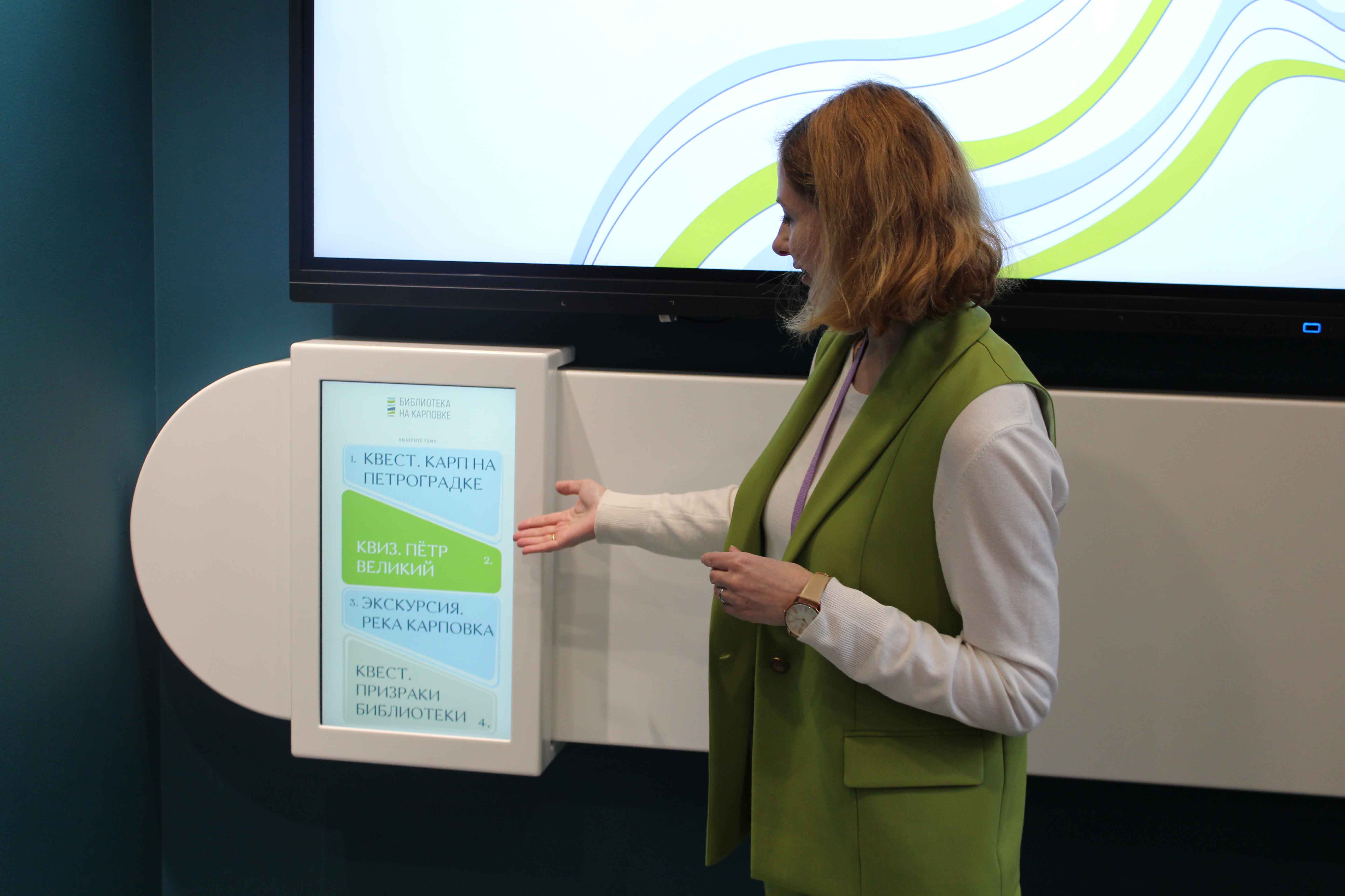 Экскурсию по обновленному пространству провела заведующая Библиотекой на Карповке Анна Сергеевна Горбачева.