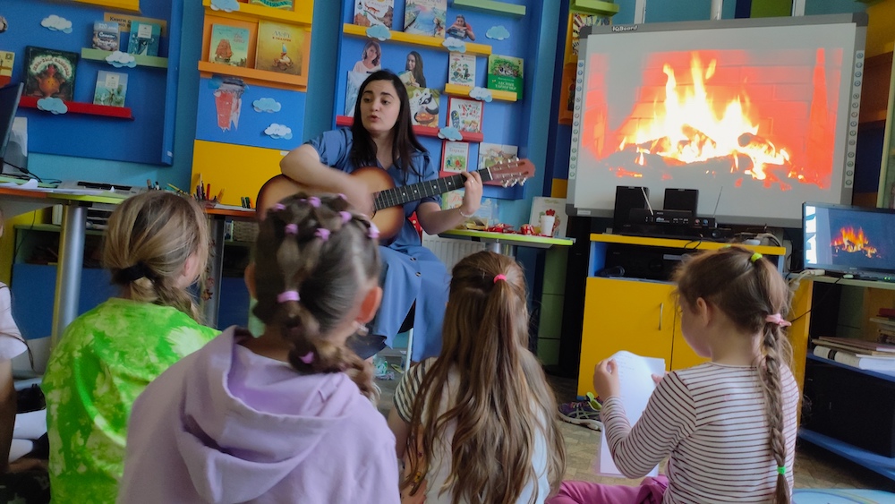 В этот вечер в библиотеке, у импровизированного костра, звучала живая гитарная музыка и громкие чтения книги Т. Куреленковой «Королева Доброта».